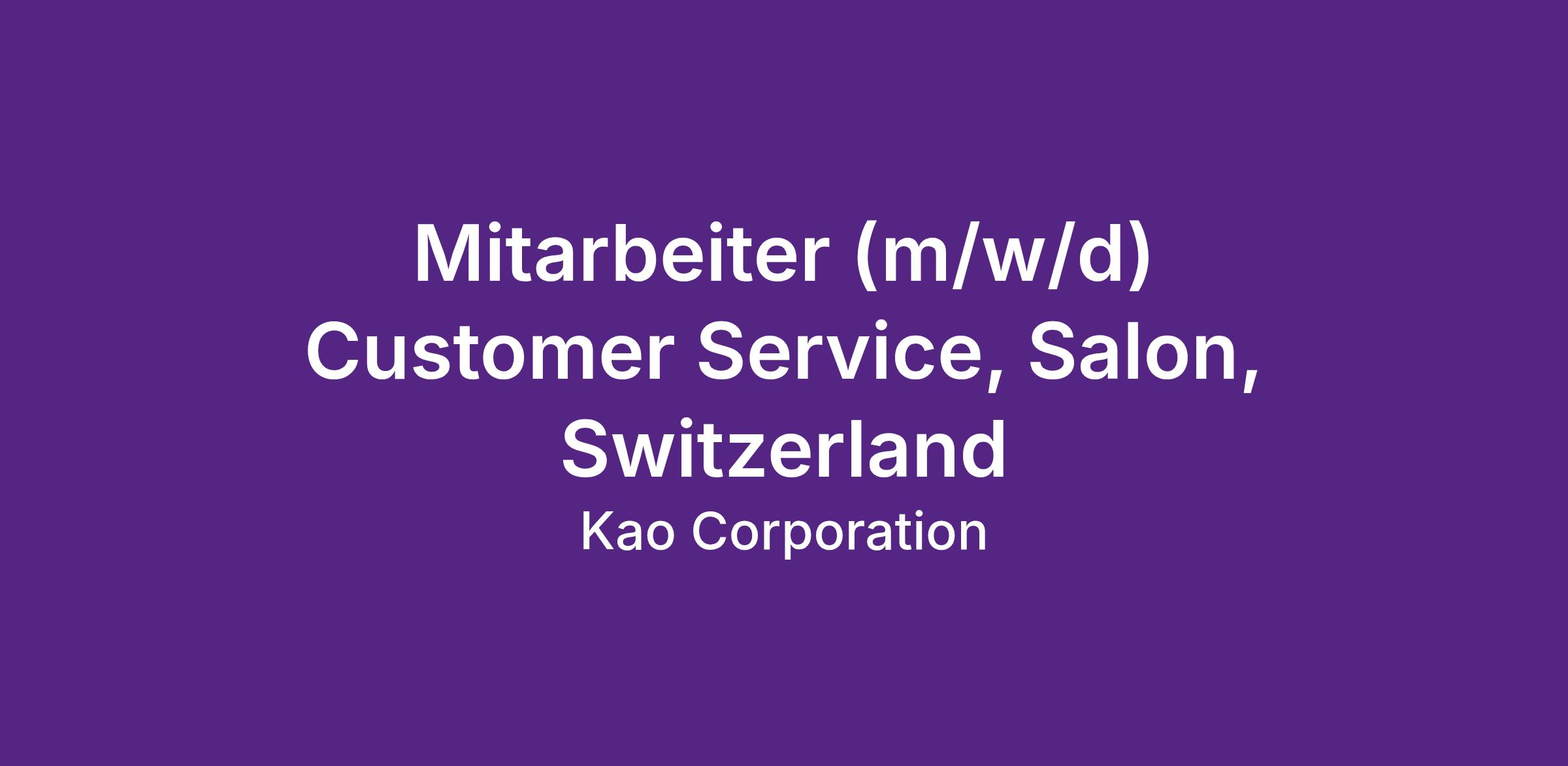 Kao Switzerland AG gehört als Unternehmen der japanischen Kao Gruppe zu einem der führenden Anbieter von Beauty Care Produkten weltweit. In Europa reicht unser Markenportfolio von etablierten und erfolgreichen Friseurmarken wie Goldwell, KMS, VARIS und Oribe bis hin zur Londoner Luxusmarke für Körperpflege und Kosmetik Molton Brown.