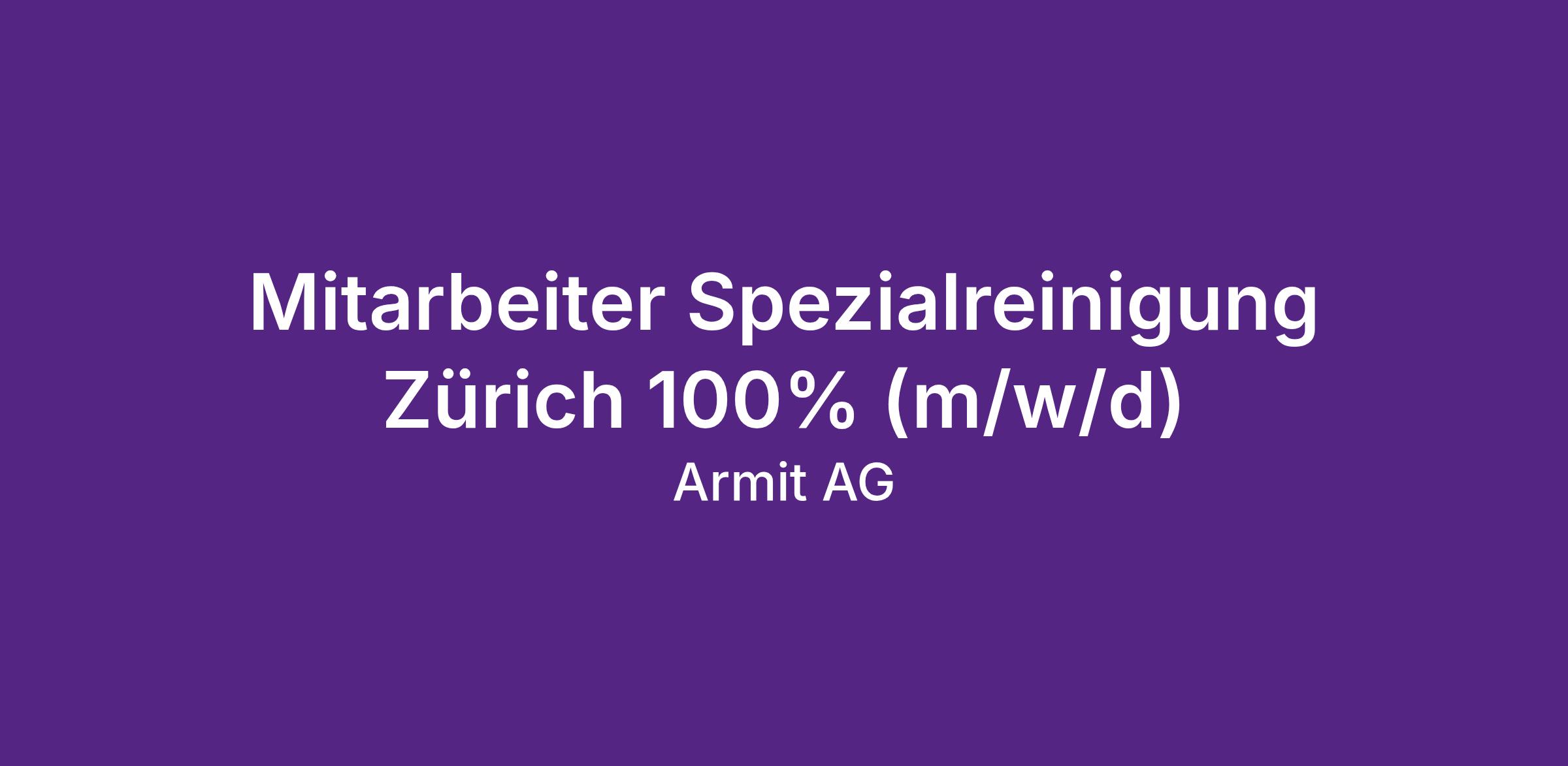 Für den weiteren Ausbau des Spezialreinigungs-Team in Zürich suchen wir Sie!