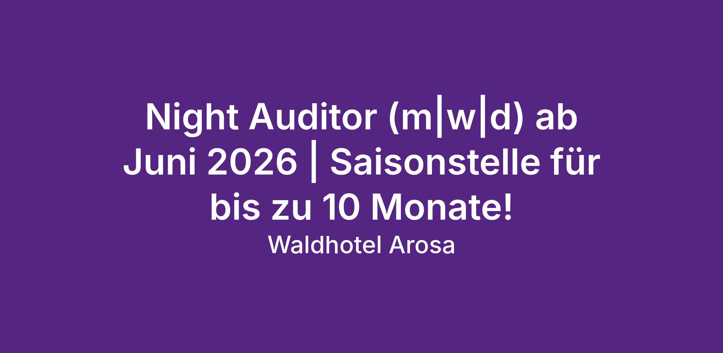 Zur Ergänzung unseres Front Office Teams suchen wir ab Mitte Juni 2026 oder nach Vereinbarung eine zuverlässige Persönlichkeit als Night Auditor.