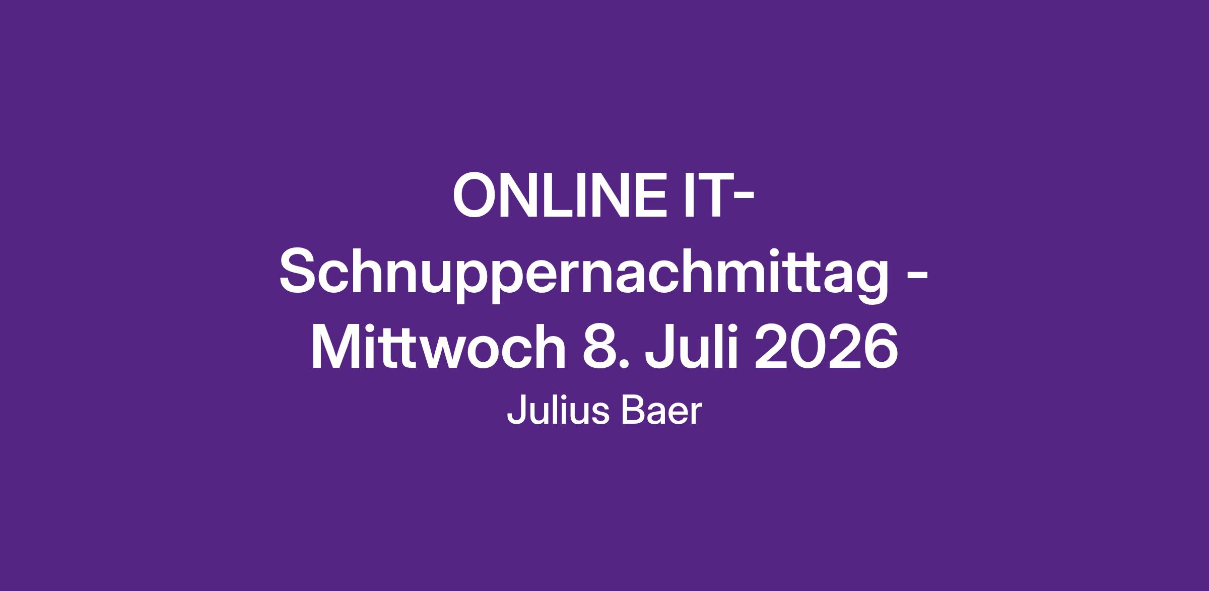 Es ist nicht einfach, sich für einen künftigen Beruf zu entscheiden. Deshalb erfährst du an unseren IT-Schnuppernachmittagen viel über die Informatiklehre (Applikationsentwicklung, Plattformentwicklung, ICT-Fachmann/Fachfrau) und den spannenden Lehrablauf bei Julius Bär. Unsere Lernenden und Coaches berichten von ihrem Alltag, ihren Highlights und stehen dir für deine Fragen rund um die Lehre zur Verfügung. Während dieser online Veranstaltung bekommst du einen umfassenden Einblick in die IT-Welt einer internationalen Privatbank.ANFORDERUNGEN