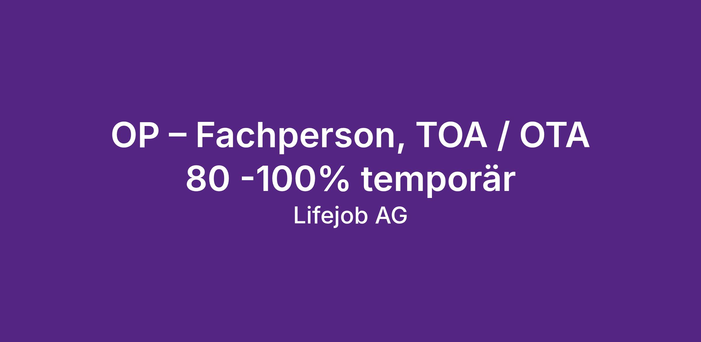 OP – Fachperson, TOA / OTA 80 -100% temporär