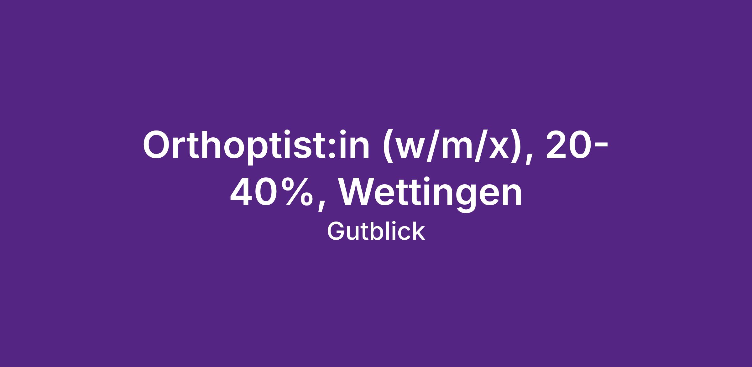 - Du hast eine abgeschlossene Ausbildung als Dipl. Orthoptist:in HF