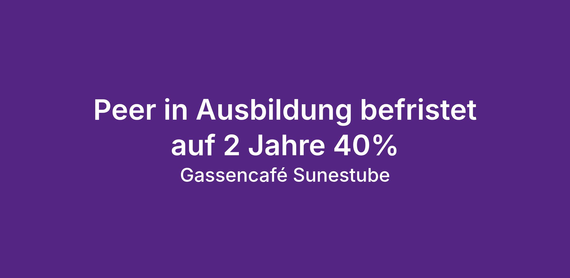 Auskünfte erteilt dir gerne Rémy Guillaume, Koordinator Peer Ausbildung und Gassenarbeiter, 044 537 58 00. Informationen findest du auch unter www.swsieber.ch. Wir bieten ein offenes Arbeitsklima mit engagierten Mitarbeitenden, die täglich im Einsatz für Menschen aus dem Sucht- und Obdachlosenmilieu sind.