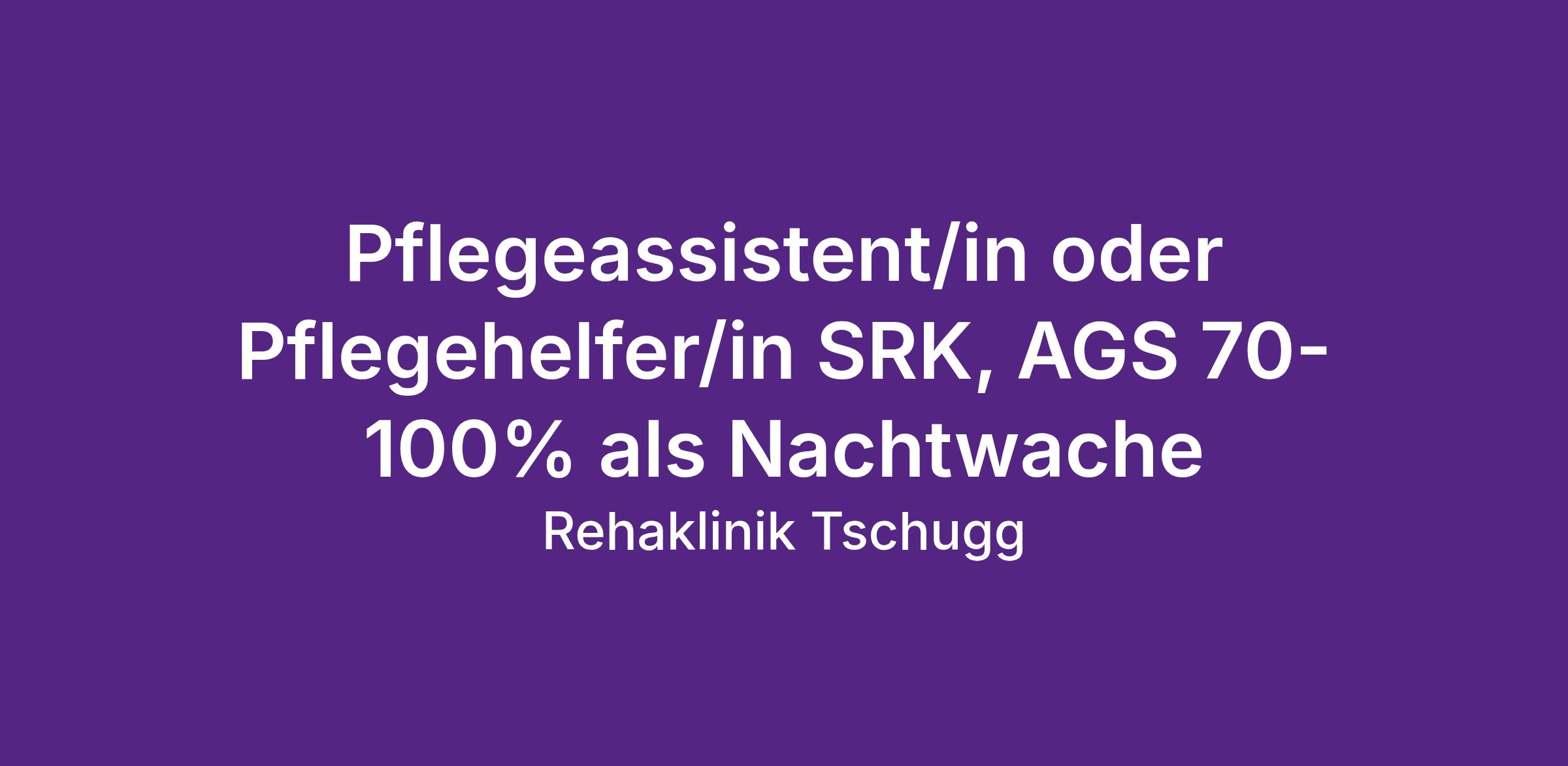 Zur Ergänzung unseres Teams suchen wir per 1. Juli 2026 oder nach Vereinbarung eine/n Pflegeassistent/in oder Pflegehelfer/in SRK, AGS 70-100% als Nachtwache Arbeitsort: Rehaklinik TschuggWo dein Job
