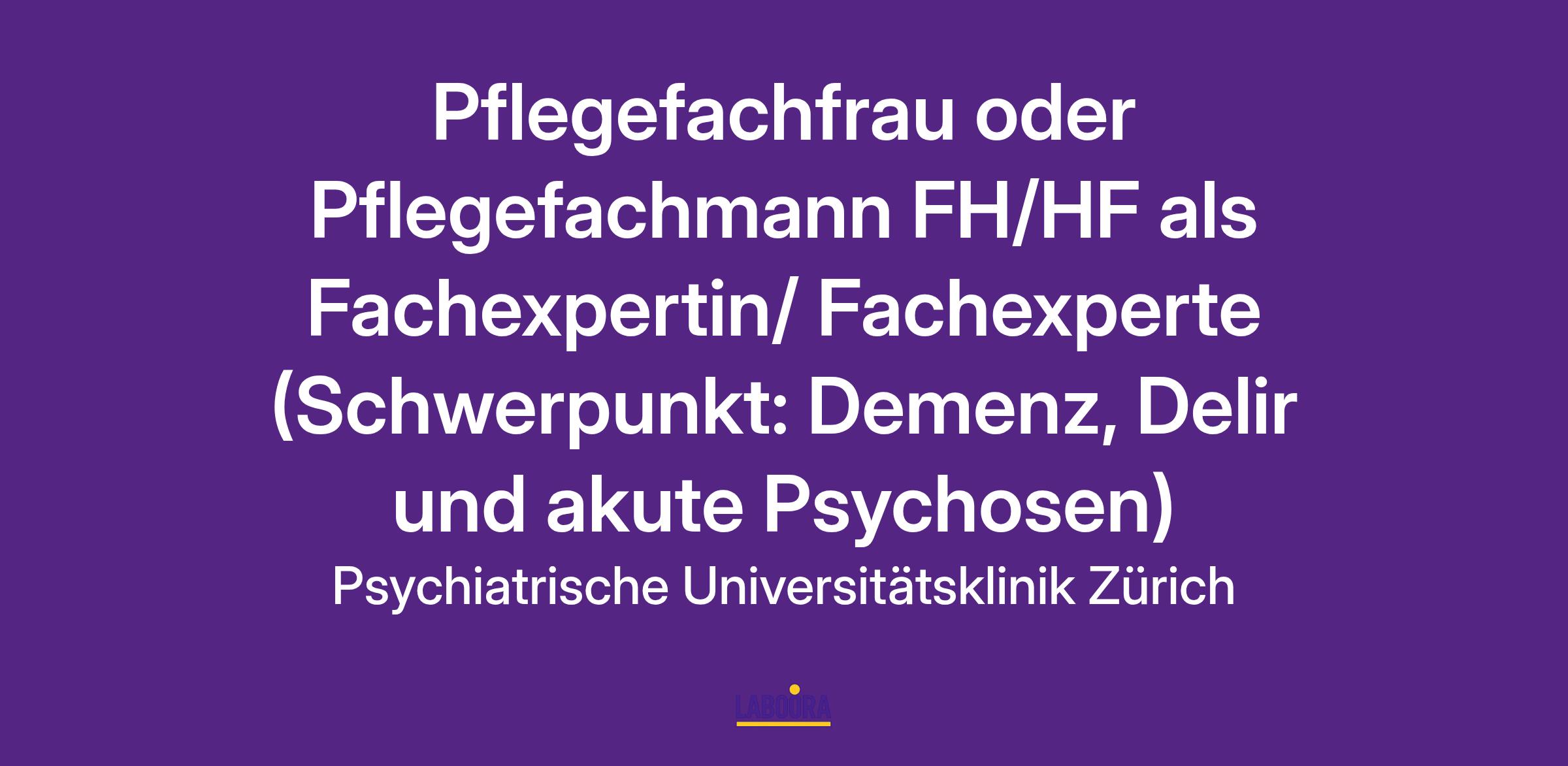 Pflegefachfrau oder Pflegefachmann FH/HF als Fachexpertin/ Fachexperte (Schwerpunkt: Demenz, Delir und akute Psychosen)