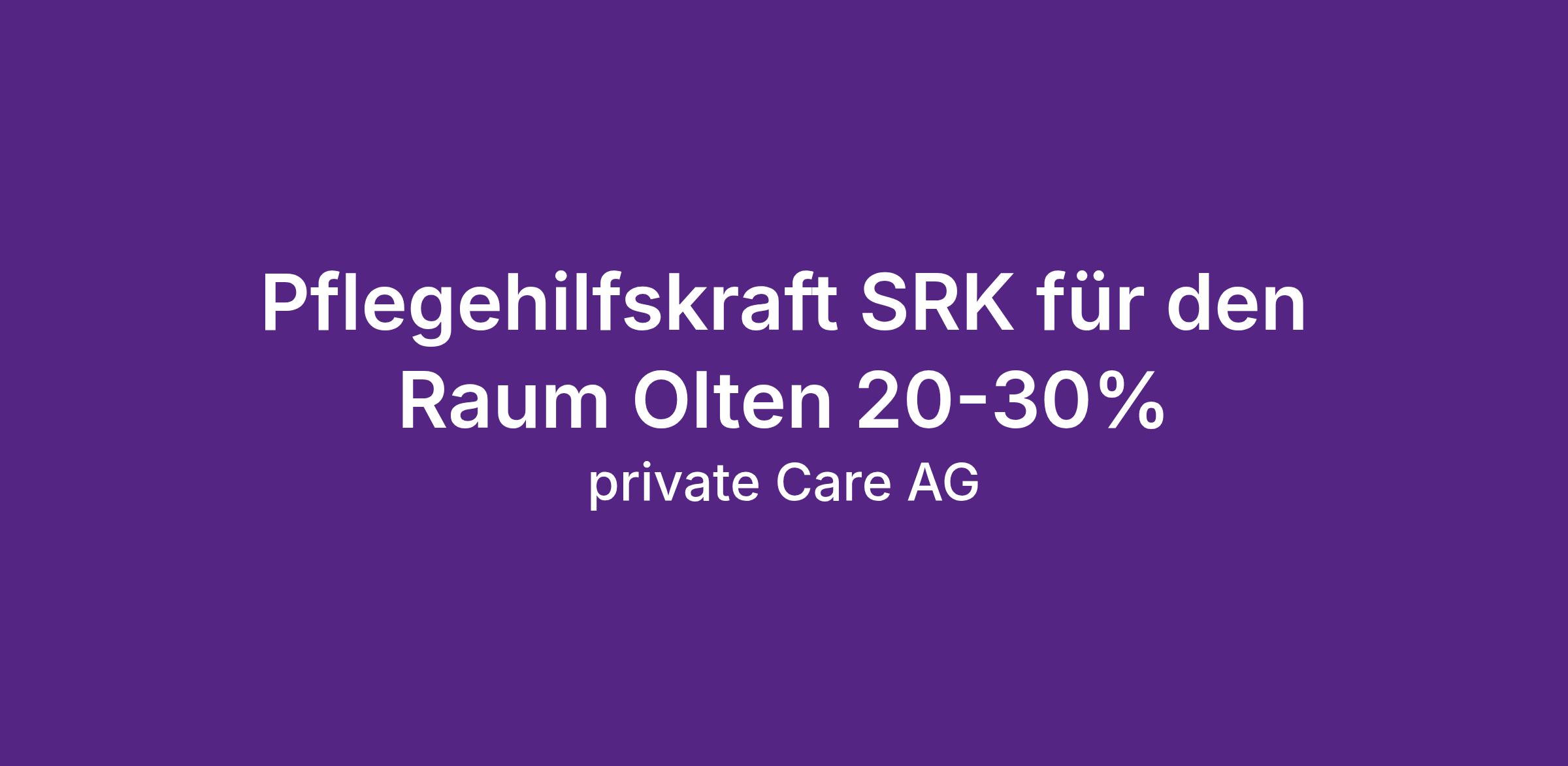 Die private Care AG ist ein dynamisches, zukunftsorientiertes Unternehmen, welches private Pflegedienstleistungen in den Kantonen Aargau, Zürich, Solothurn und Schaffhausen anbietet sowie spezialisierte Fachkräfte aus Pflege und Gesundheitswesen in der deutschsprachigen Schweiz vermittelt.