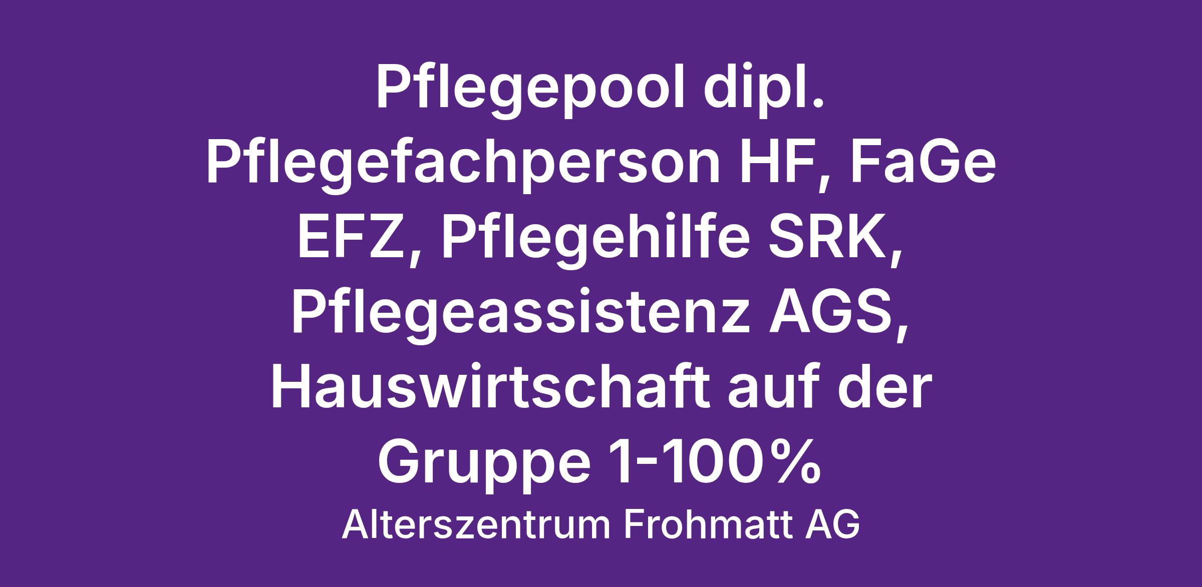 Werden Sie Teil unseres innovativen Teams im Alterszentrum Frohmatt!