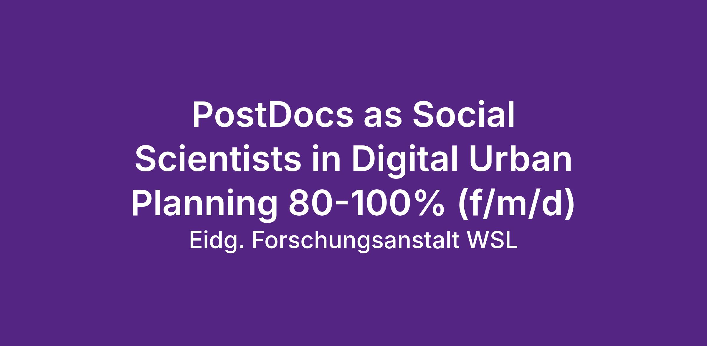 Postdoktorierende als Sozialwissenschaftler im Bereich digitale Stadtplanung 80-100% (w/m/d)