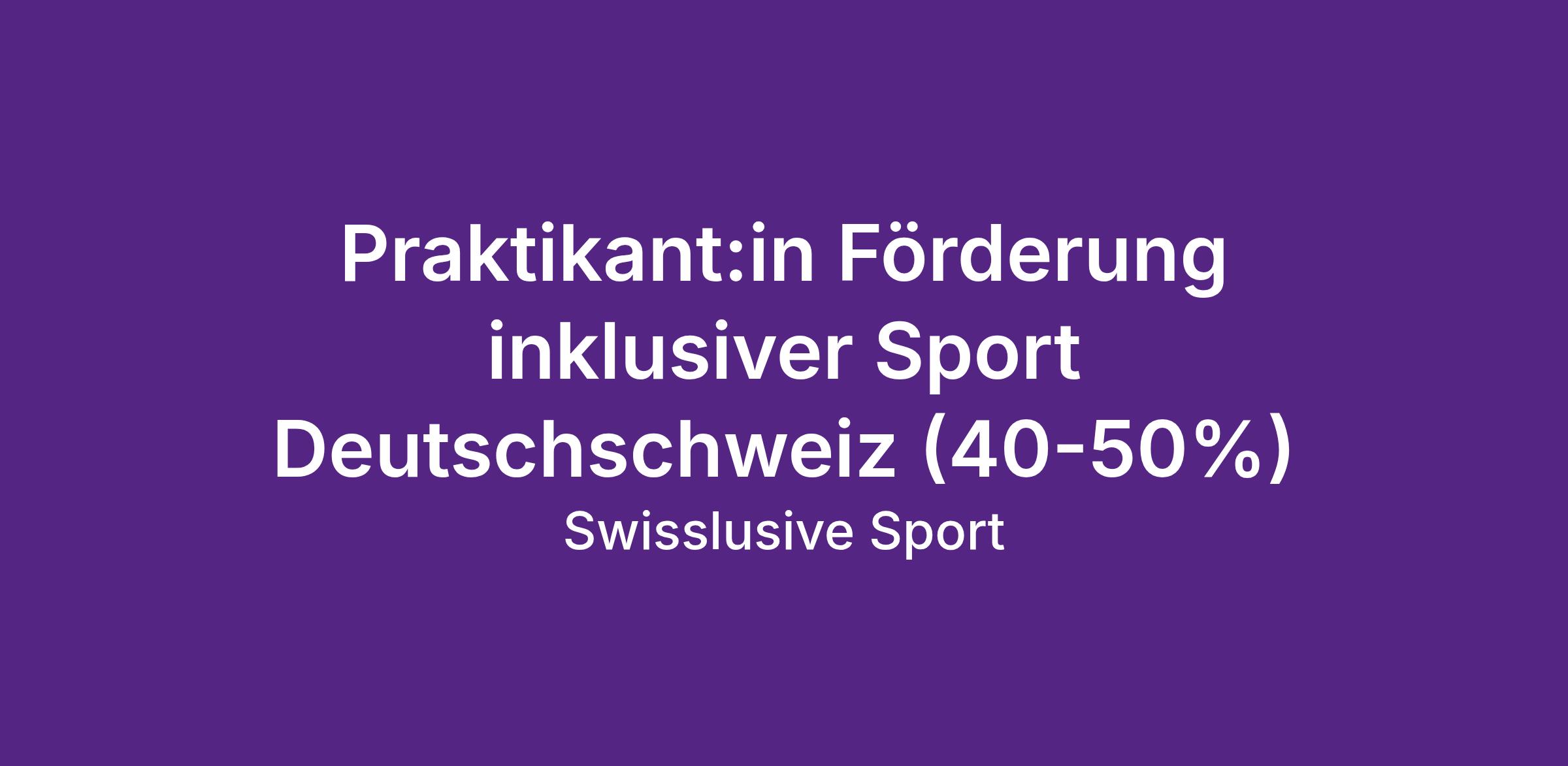 Zur Verstärkung unseres Teams suchen wir per August 2026 oder nach Vereinbarung befristet für 6-8 Monate eine:n Praktikant:in Förderung inklusiver Sport Deutschschweiz (40-50%)