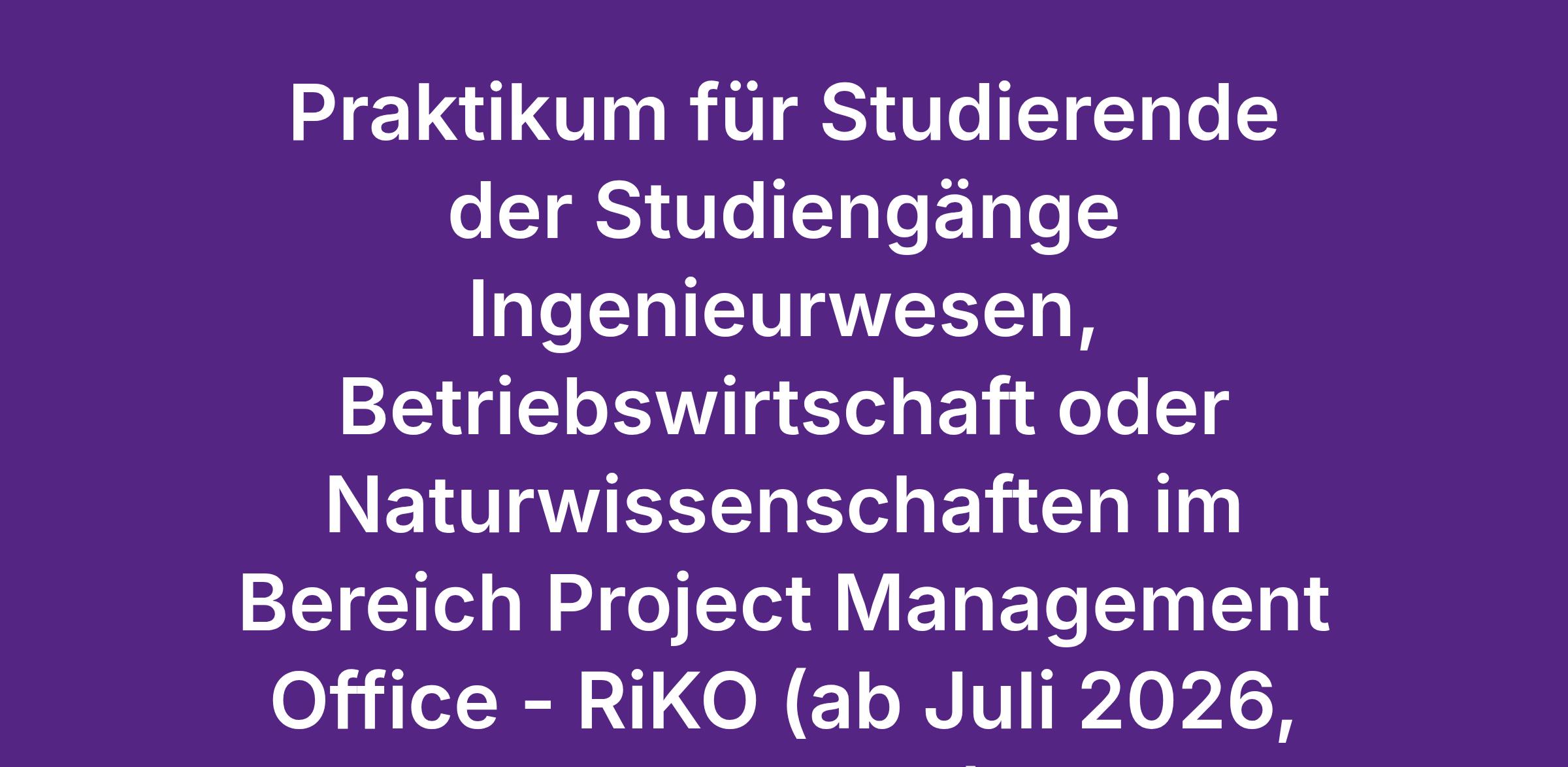 Der bevorzugte Start des Praktikums ist im Juli 2026 oder nach Vereinbarung. Bitte gib Dein präferiertes Startdatum und die gewünschte Praktikumsdauer in Deiner Bewerbung an.