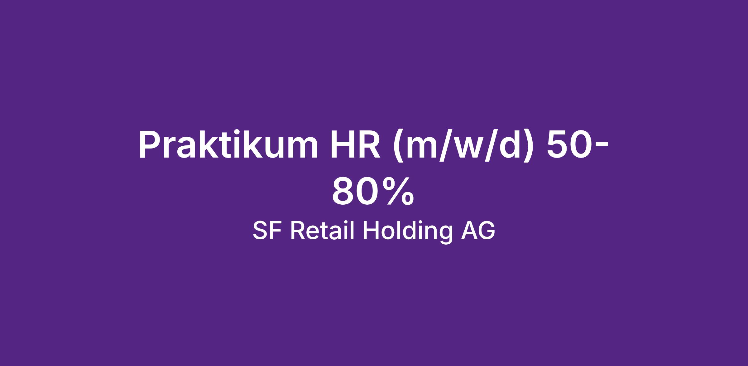 Wir sind eine inhabergeführte Retail-Holding mit rund 170 Mitarbeitenden. HR ist eine kleine, schlagkräftige Einheit. Recruiting, Administration und operative Umsetzung liegen direkt im Team. Du unterstützt uns im Tagesgeschäft und erhältst Einblick in alle HR-Prozesse.