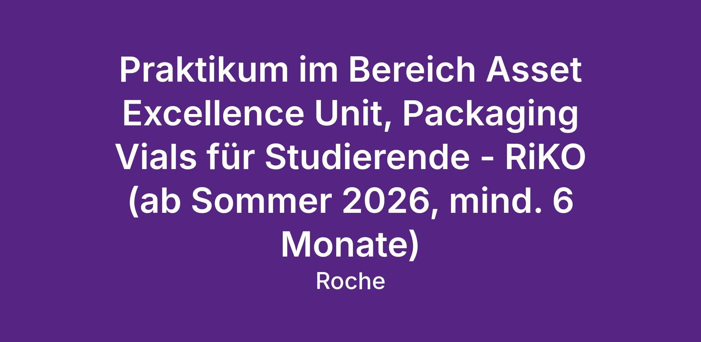 An unserem Standort in Kaiseraugst bieten wir ab Sommer 2026 eine Vielzahl an spannenden Praktikumsmöglichkeiten an. Möchtest Du mehr über unseren Produktionsstandort Kaiseraugst, das RiKO-Programm sowie unsere offenen Praktikumsstellen erfahren, so besuche unsere Website mit vielen Informationen unter folgendem Link.