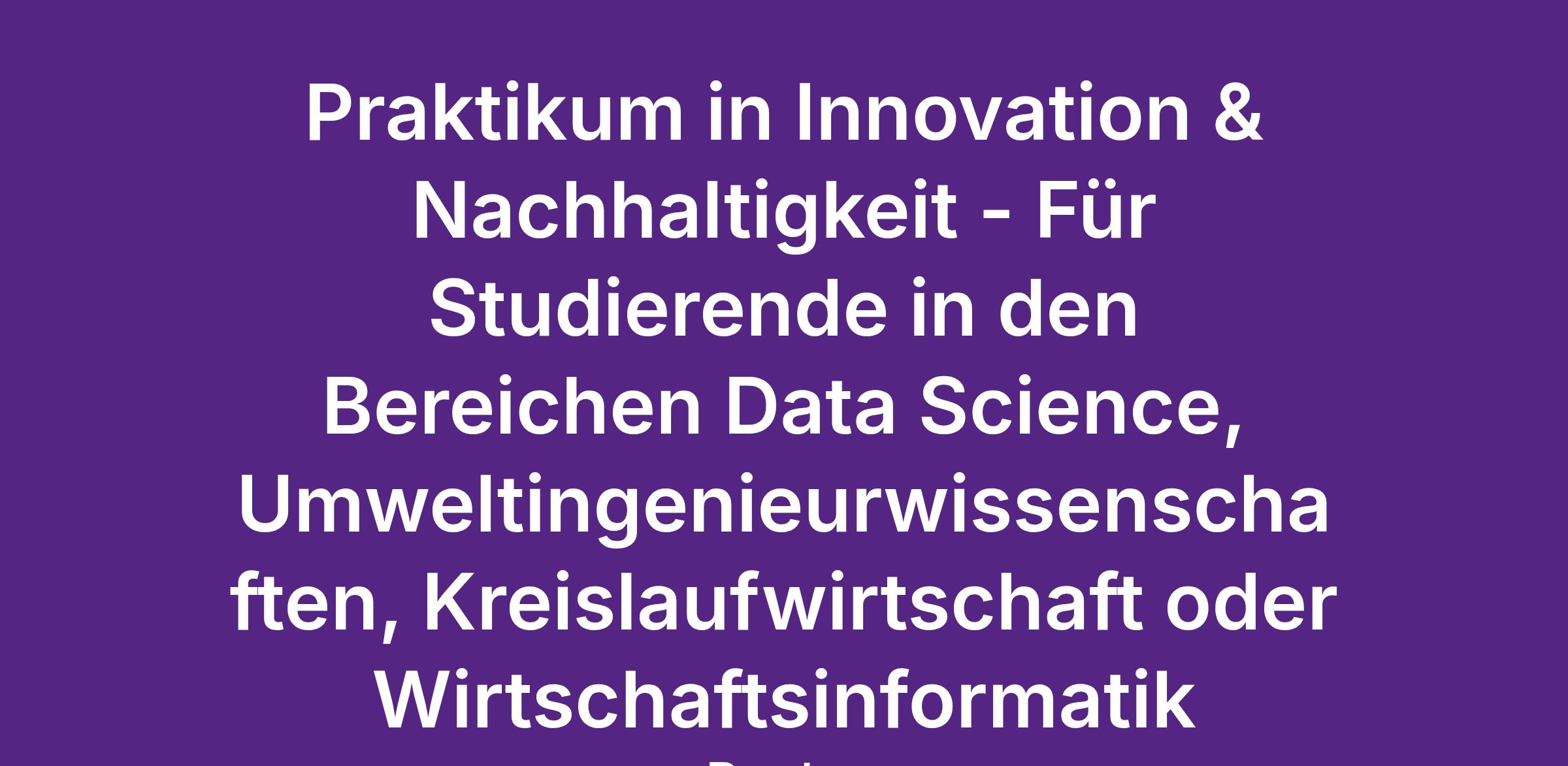 Du bist immatrikuliert oder hast dein Master- oder PhD-Studium an einer Universität abgeschlossen, vorzugsweise im Bereich Data Science, Umweltingenieurwissenschaften, Kreislaufwirtschaft oder Wirtschaftsinformatik innerhalb der letzten 12 Monate, und bist daran interessiert, dein Wissen in einem modernen Arbeitsumfeld im Rahmen eines mindestens 3-monatigen Praktikums anzuwenden.