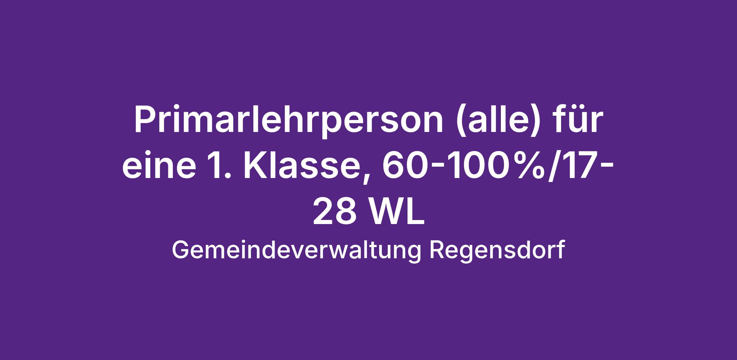 Primarlehrperson (alle) für eine 1. Klasse, 60-100%/17-28 WL