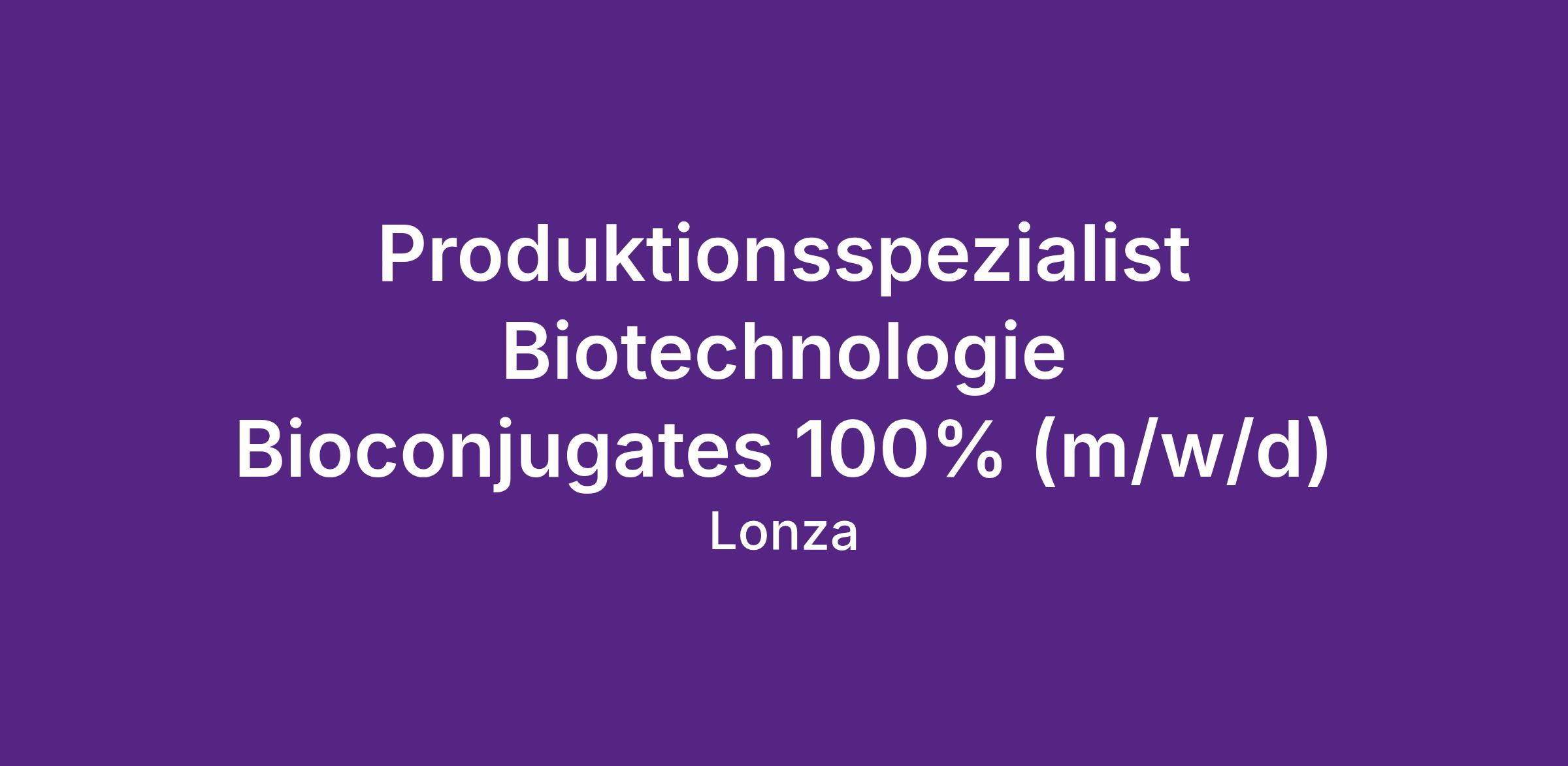 Werden Sie Teil unseres engagierten Teams in Visp – als erfahrene/r Produktionsspezialist/in (Manufacturing Specialist) für die pharmazeutische Produktion im Bereich Bioconjugates.