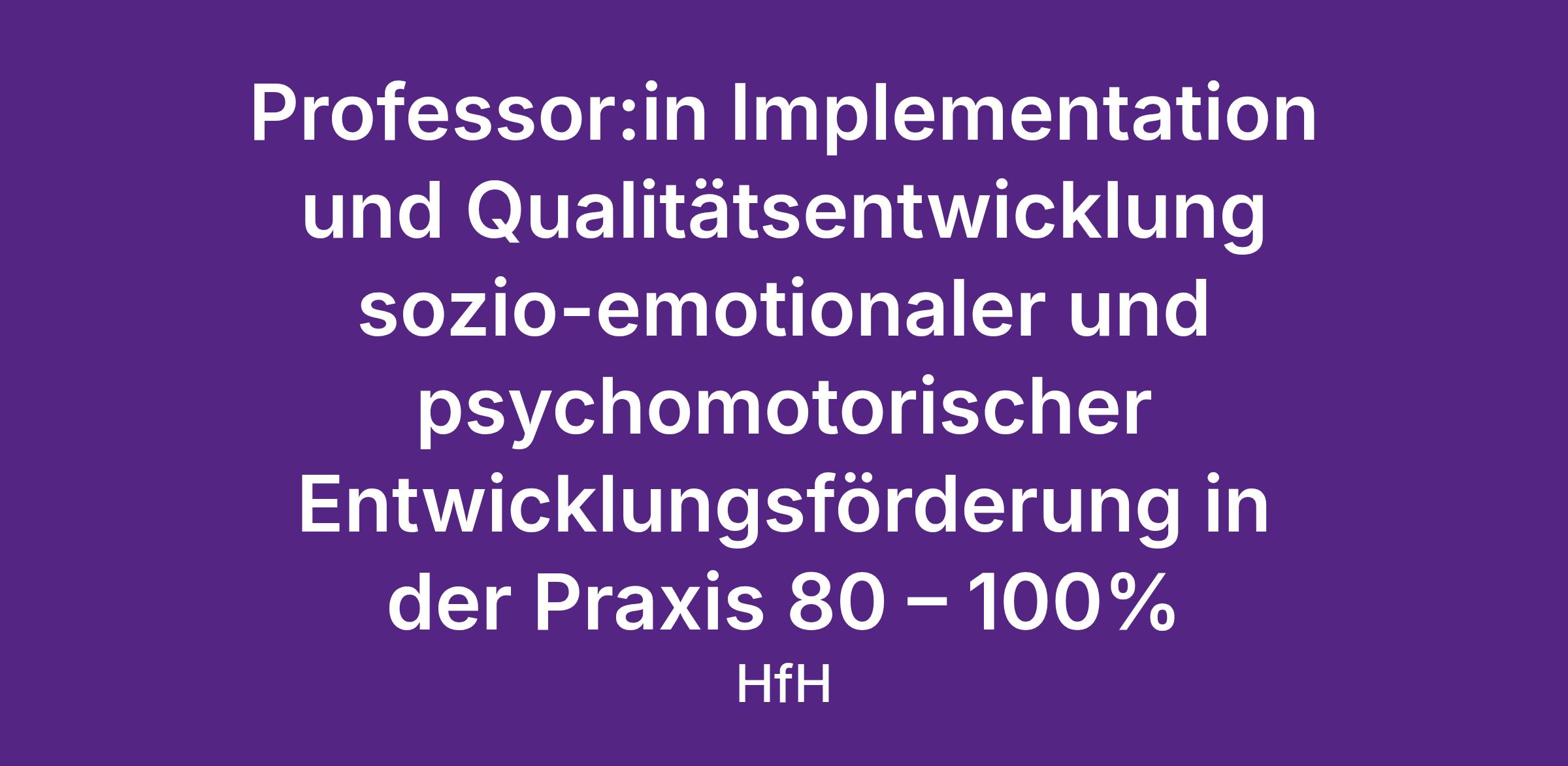 Für das Institut für Verhalten, sozio-emotionale und psychomotorische Entwicklungsförderung suchen wir per 1. September 2026 oder nach Vereinbarung eine engagierte Persönlichkeit für das strategische Lehr-, Forschungs- und Entwicklungsfeld «Implementation und Qualitätsentwicklung sozio-emotionaler und psychomotorischer Entwicklungsförderung in der Praxis».