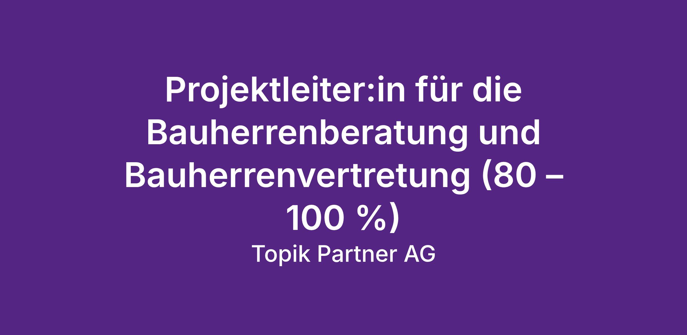 Topik Partner AG möchte weiterwachsen, innovativ bleiben und noch mehr bewegen. Wir wünschen uns eine motivierte Persönlichkeit mit Enthusiasmus, die uns bei der Arbeit unterstützt.