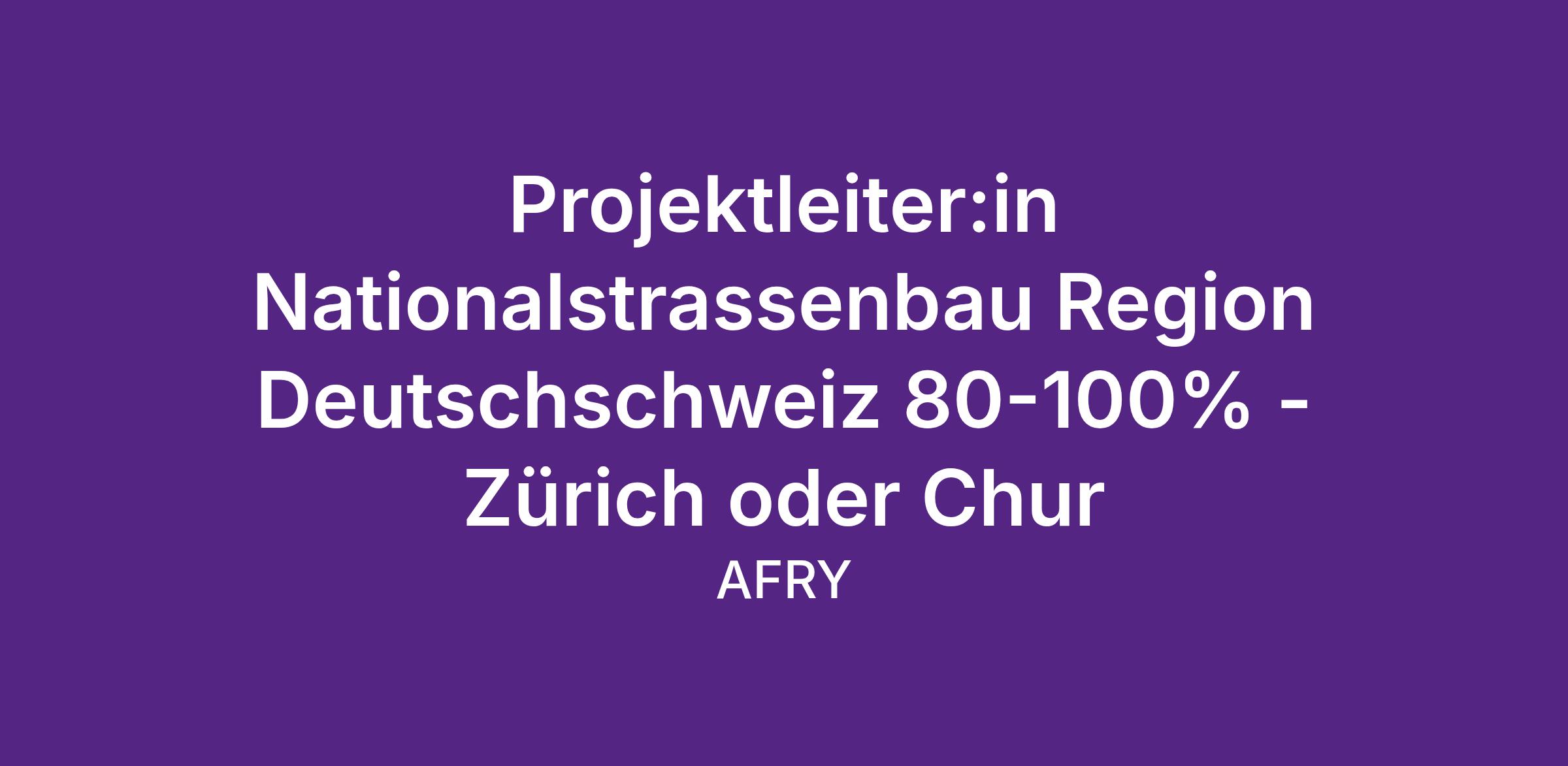 PROJEKTLEITER:IN NATIONALSTRASSENBAU REGION DEUTSCHSCHWEIZ