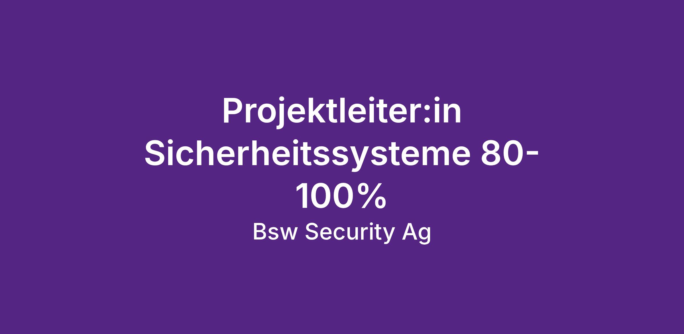 Projektleiter:in Sicherheitssysteme 80-100%