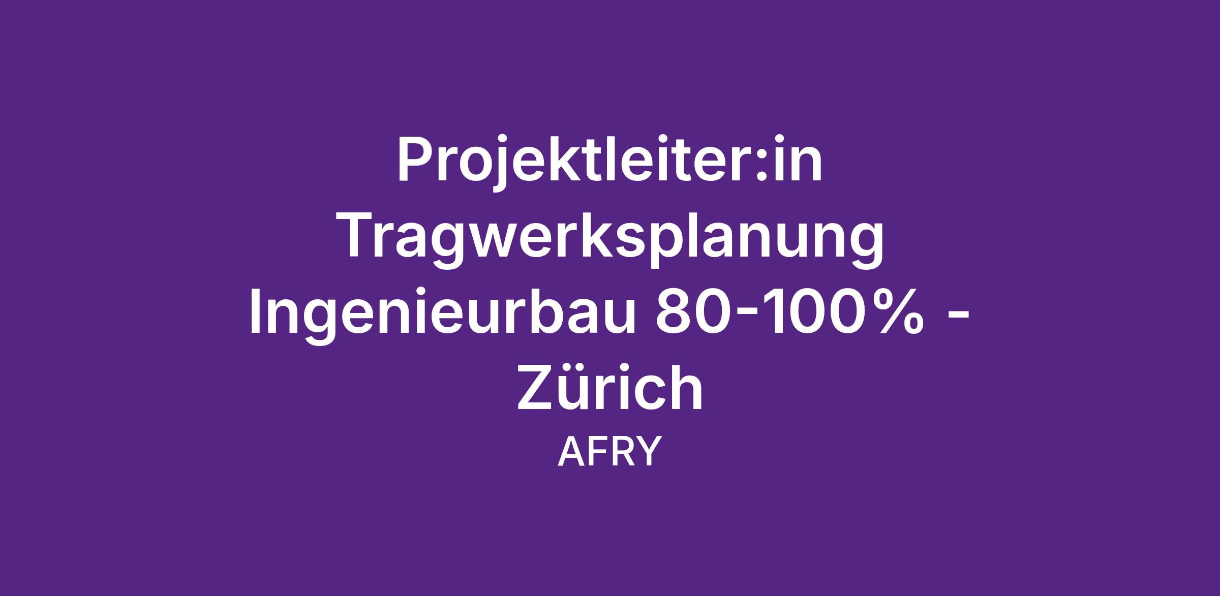 PROJEKTLEITER:IN TRAGWERKSPLANUNG INGENIEURBAU 80-100% - ZÜRICH