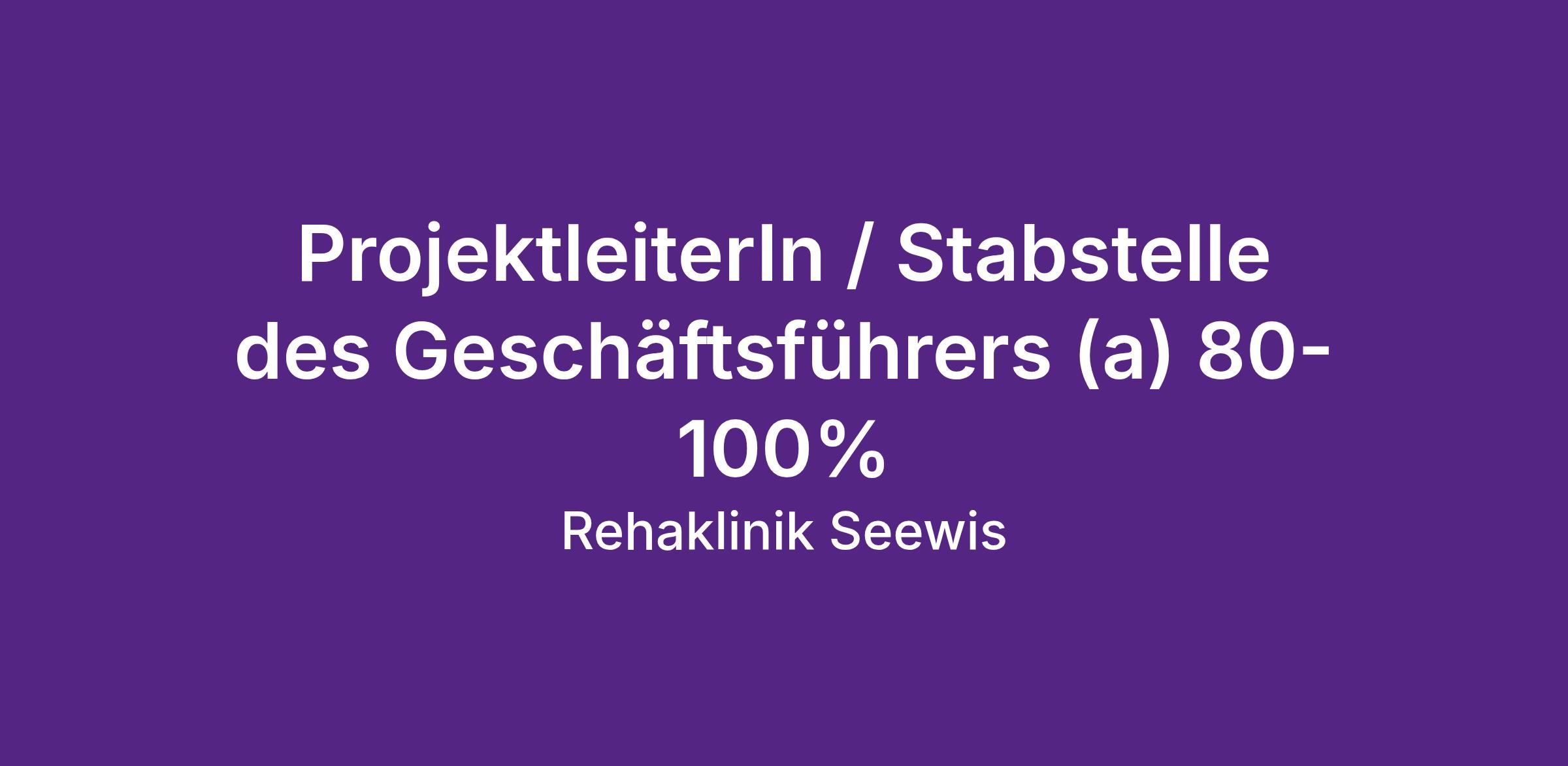 ProjektleiterIn / Stabstelle des Geschäftsführers (a) 80-100% Arbeitsort: Rehaklinik SeewisWo dein Job Reha macht.Kardiologie, Innere Medizin / Onkologie und Psychiatrie/Psychosomatik. Erstklassige