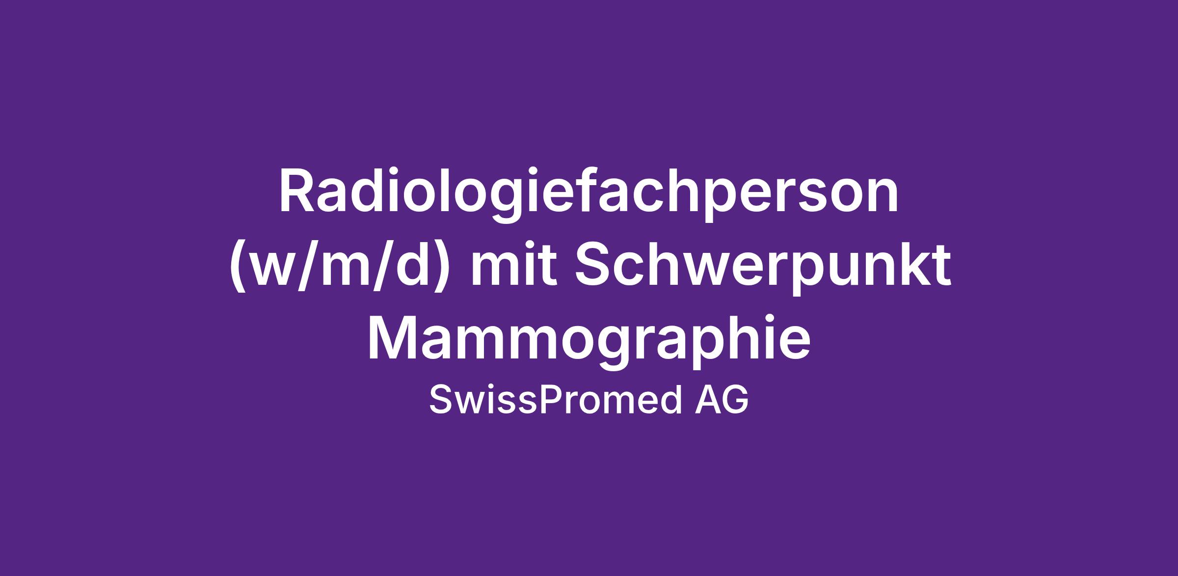 Unsere Kundin ist eines der führenden Spitäler in der Schweiz. Die Klinik steht für Forschung, Lehre und Patientenversorgung auf Spitzenniveau. Ihre über 7'500 Mitarbeitern aus 90 Nationen verfolgen dabei stets den Anspruch, die Patienten auf höchstem fachlichem Niveau zu betreuen und behandeln. Zur Verstärkung des Teams suchen wir per sofort oder nach Vereinbarung eine fachlich qualifizierte und engagierte Persönlichkeit als Radiologiefachperson (w/m/d) mit Schwerpunkt Mammographie.