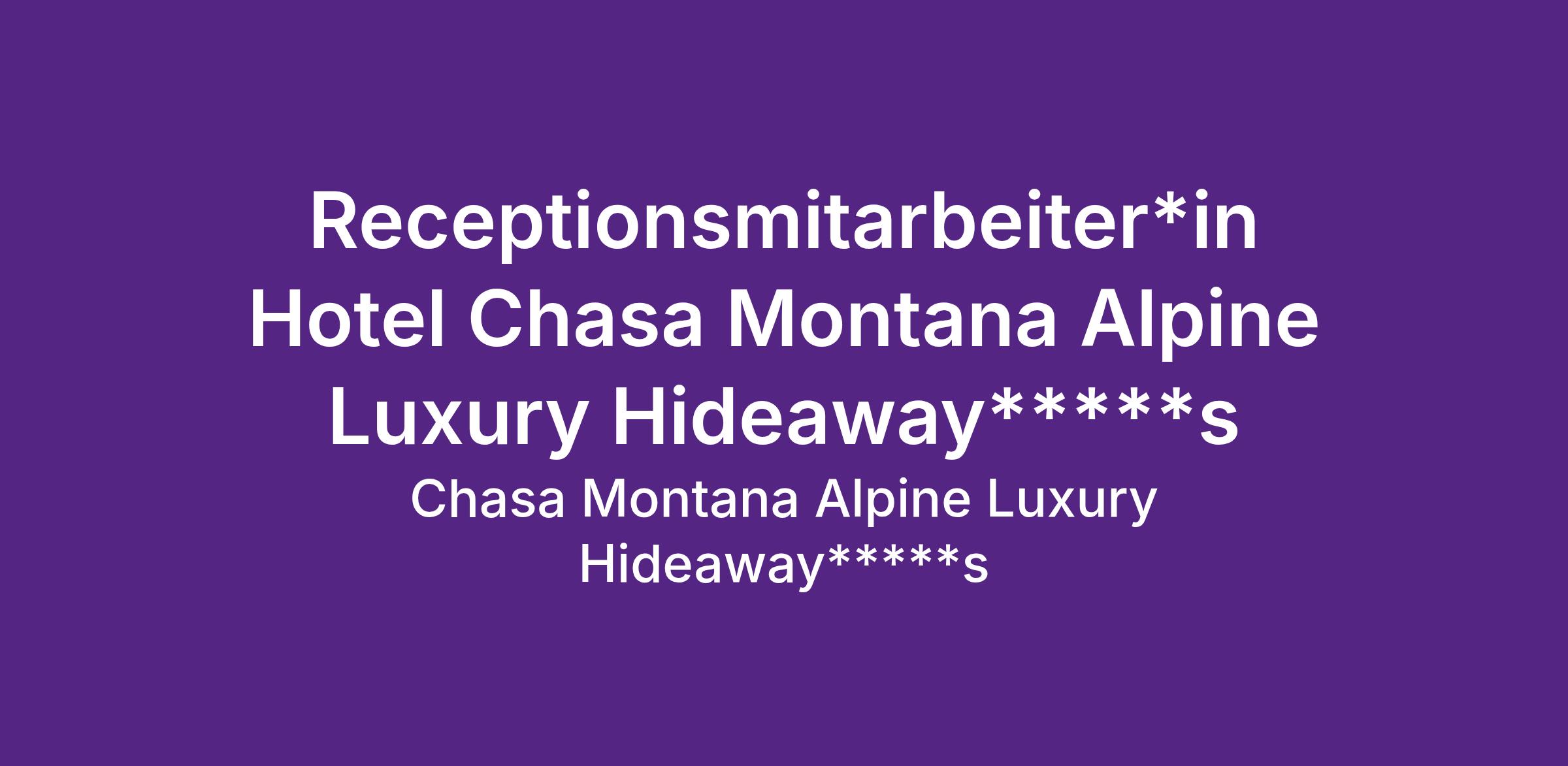 Wir suchen zur Vervollständigung unseres Teams im Relais & Châteaux Chasa Montana Alpine Luxury Hideaway*****s eine/n engagierte*n Mitarbeiter*in am Front Office.