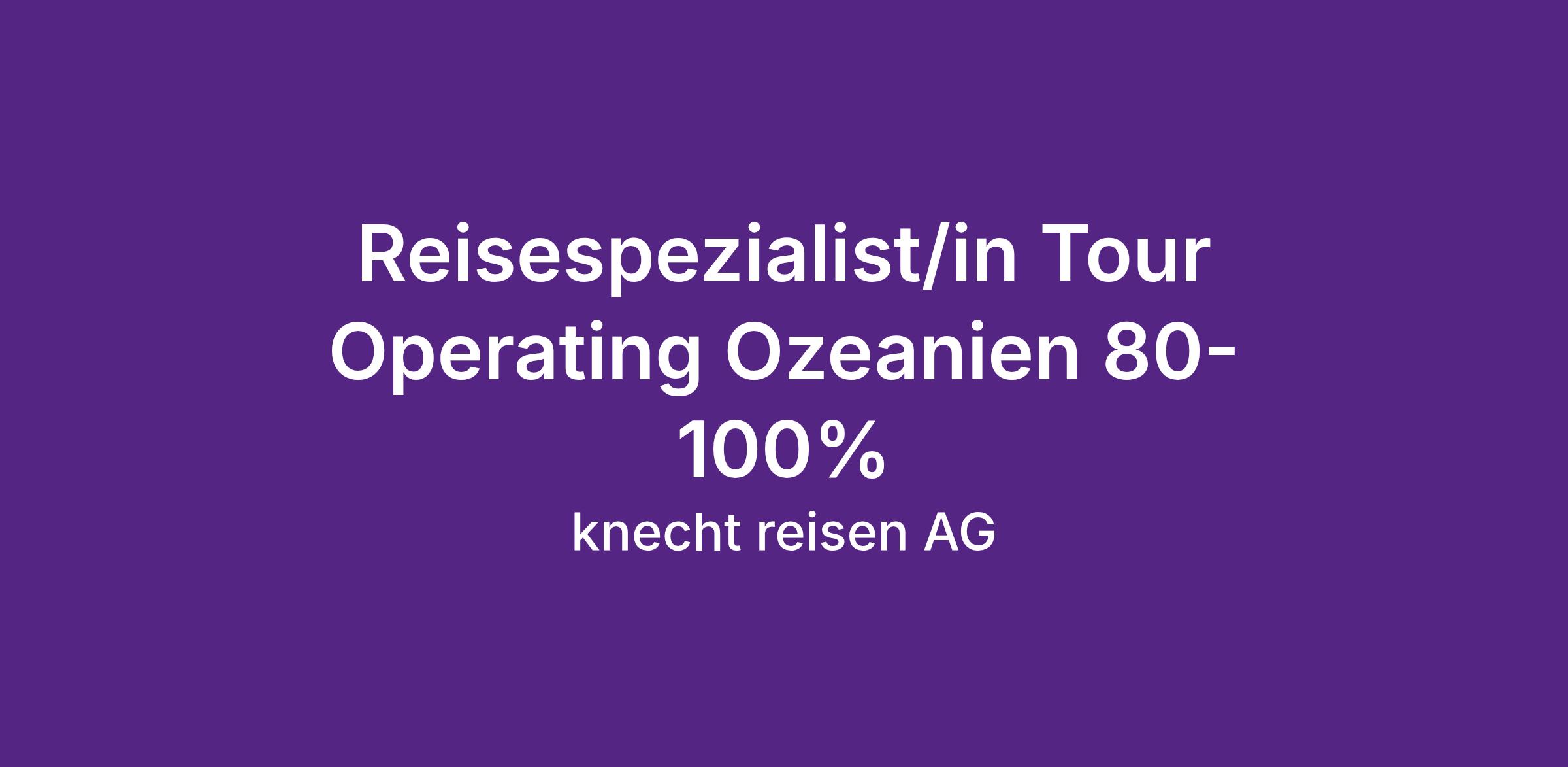 knecht reisen ist der viertgrösste Reiseveranstalter der Schweiz und steht seit über 60 Jahren für die Erfüllung von Ferienträumen. Mit unserer Expertise, Kompetenz und einem klaren Fokus auf exzellenten Service und höchste Qualität begeistern wir unsere Kunden immer wieder aufs Neue. Werde auch du Teil unseres erfolgreichen Teams und erfülle Ferienträume.