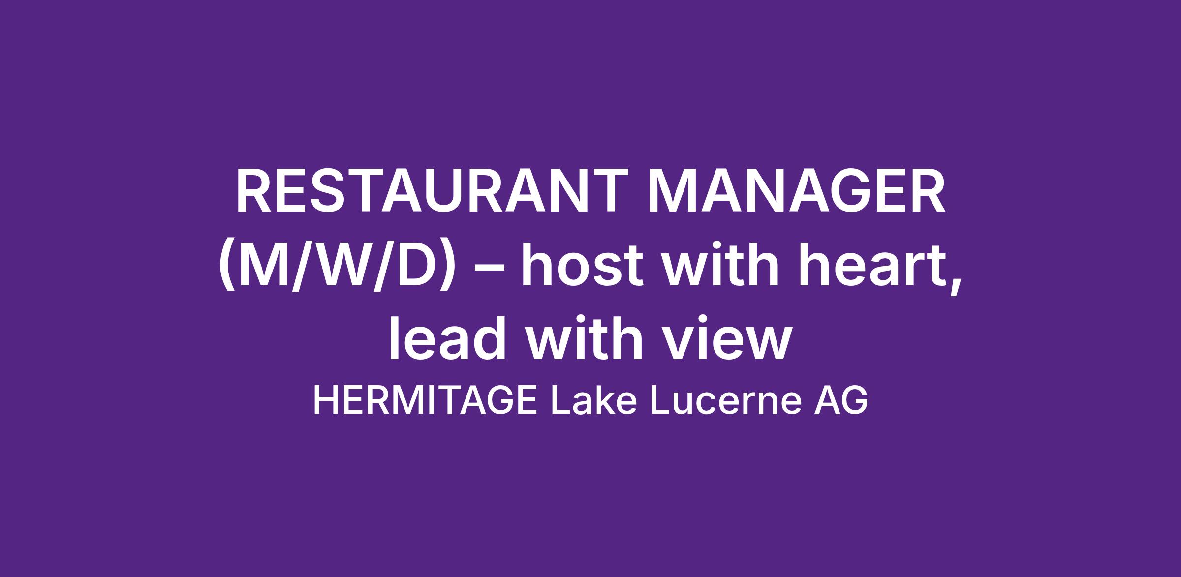 RESTAURANT MANAGER (M/W/D) – host with heart, lead with view