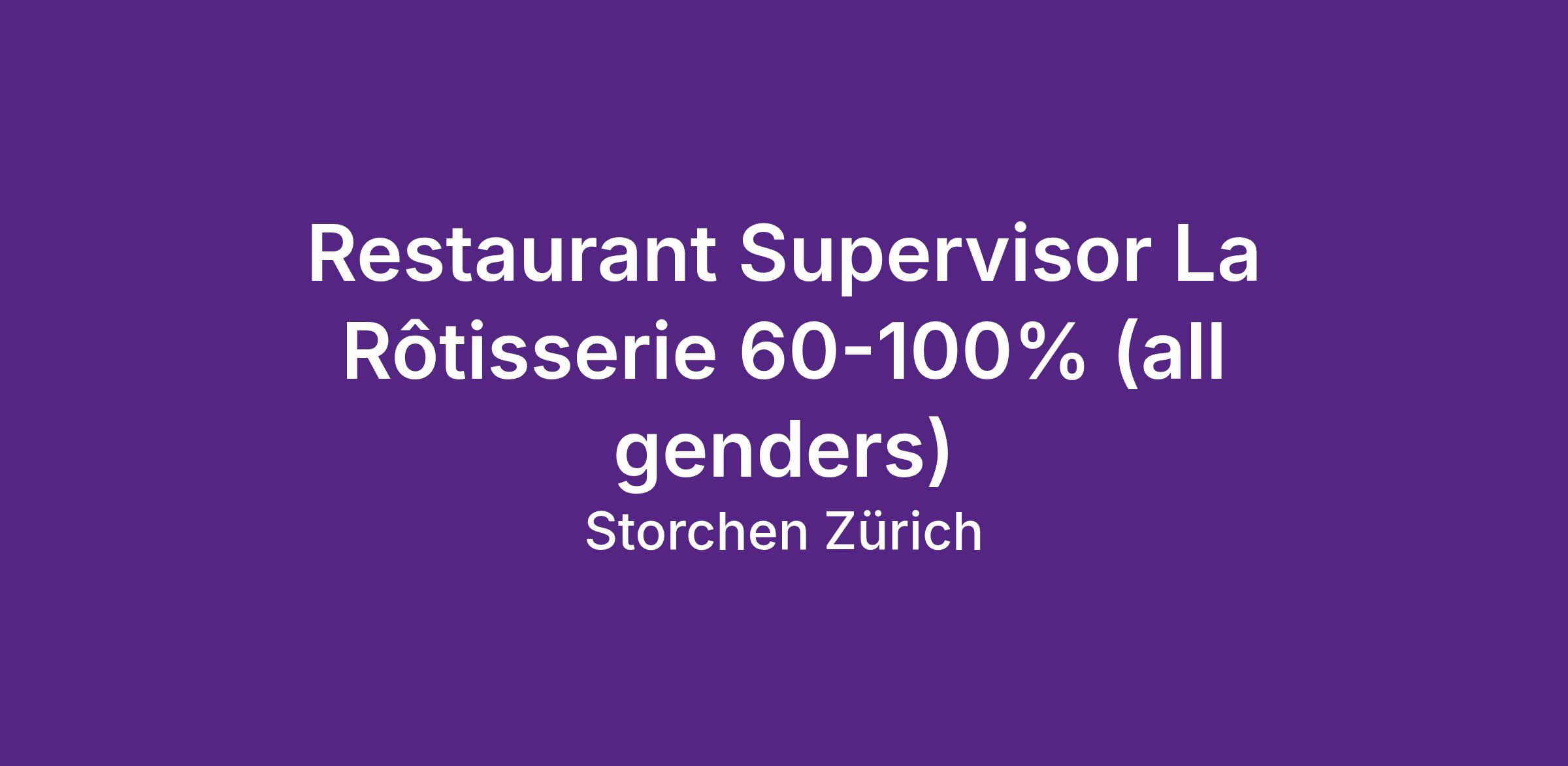 Für das Hotel Storchen suchen wir per sofort oder nach Vereinbarung einen Restaurant Supervisor für das Restaurant La Rôtisserie – mit klarem Schwerpunkt im Bankettbereich.
