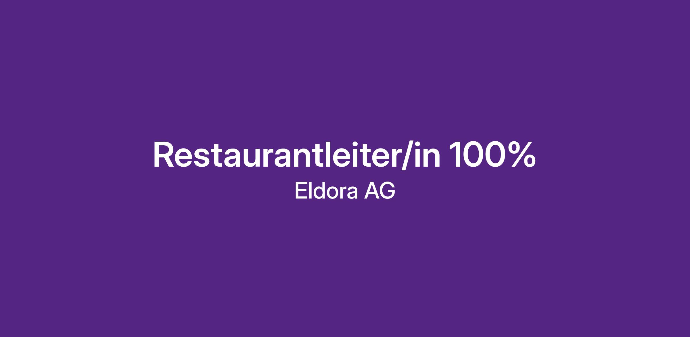 Die Eldora AG ist in der Gemeinschaftsgastronomie tätig und betreibt schweizweit über 290 Mitarbeiterrestaurants und Mensen. Über 2'300 Mitarbeitende sorgen für das tägliche Wohl unserer Gäste. Die Eldora AG bietet Ihnen ein spannendes, innovatives und dynamisches Arbeitsumfeld. Als Eldora Mitarbeiter/in profitieren Sie von einer aussergewöhnlichen Sozialpolitik, internen und externen Ausbildungsmöglichkeiten und von unserer eigenen Personalvorsorgestiftung. Eldora wendet in allen Mitarbeiterrestaurants den L-GAV (Landes-Gesamtarbeitsvertrag) an.