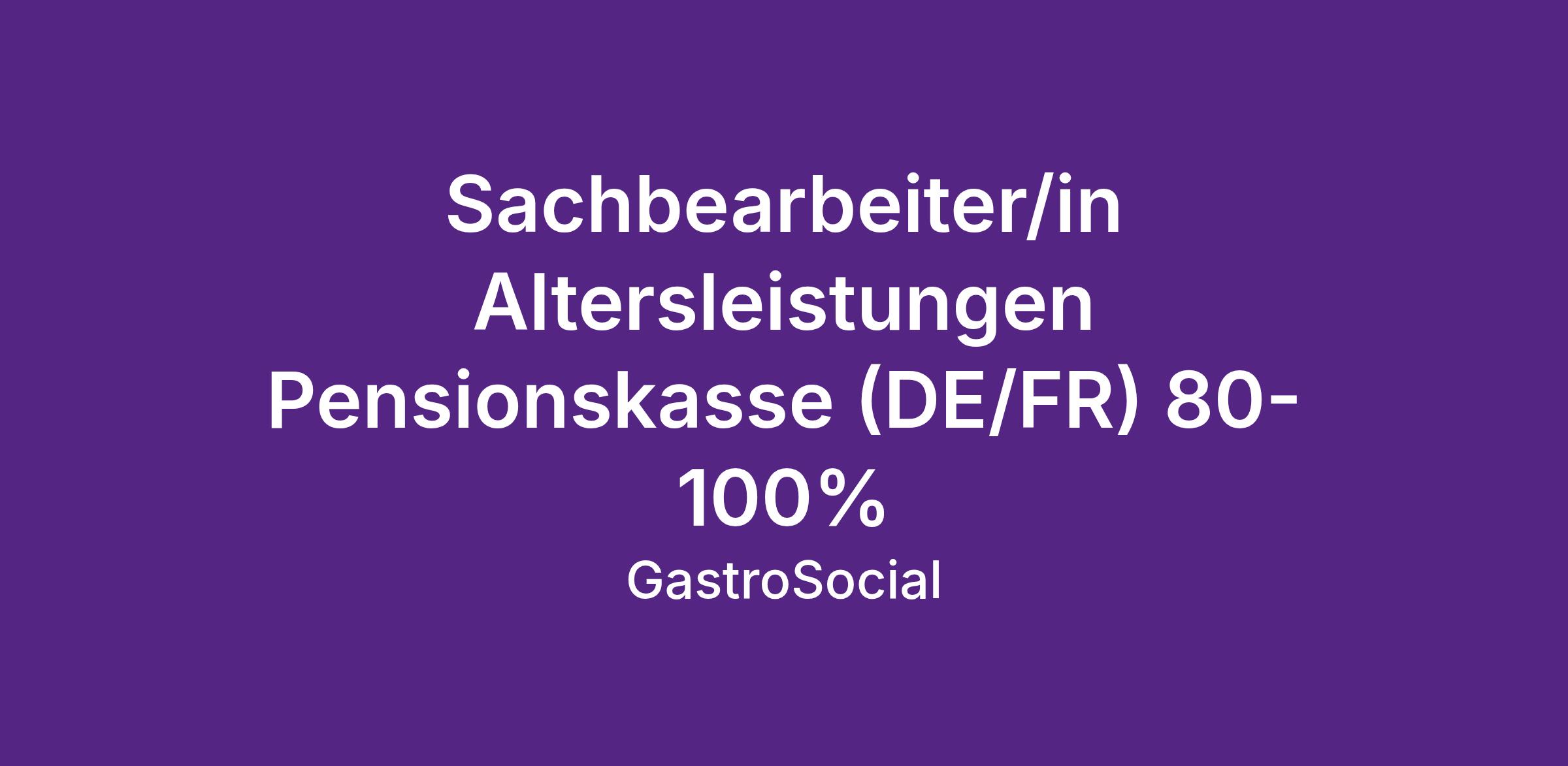 Unterstütze unsere Versicherten bei ihren Fragen rund um das Thema Altersleistungen der 2. Säule und werde per sofort oder nach Vereinbarung unsere neue, proaktive und teamorientierte Verstärkung als Sachbearbeiter/in im Team Alters- und Hinterlassenenleistungen Pensionskasse (DE/FR).