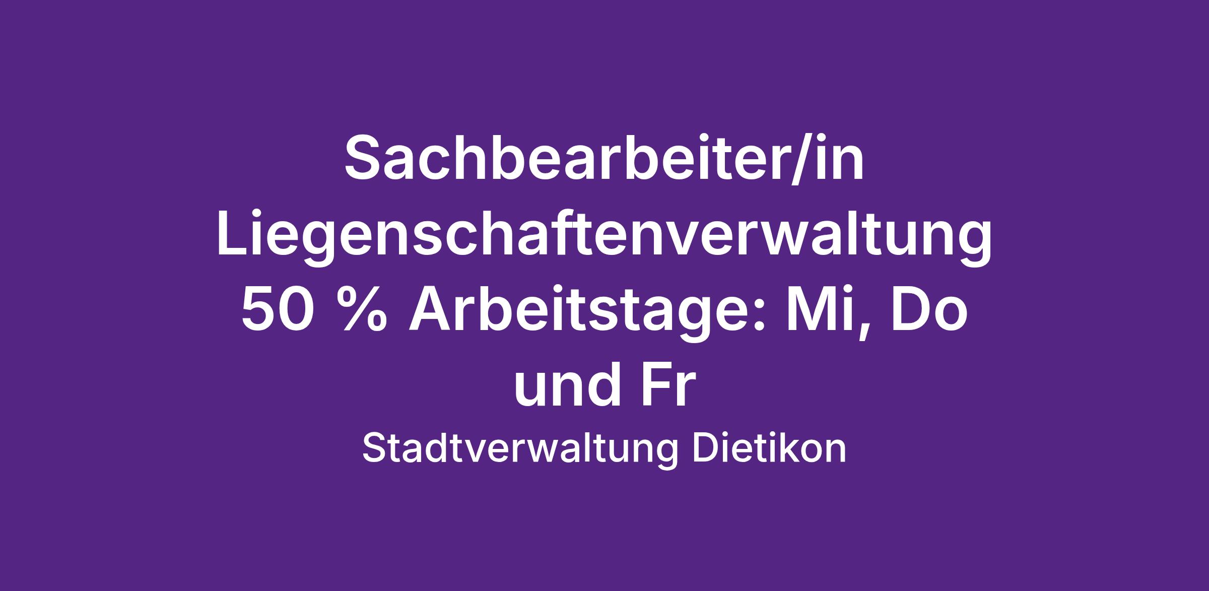 Sachbearbeiter/in Liegenschaftenverwaltung 50 % Arbeitstage: Mi, Do und Fr