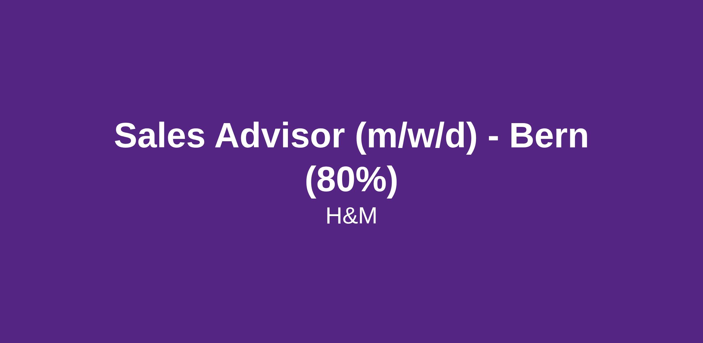 Sales Advisor (m/w/d) - Bern (80%)