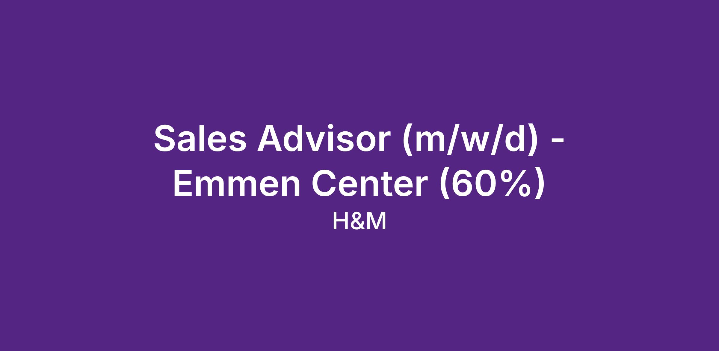 Als Sales Advisor bei H&M spielst du eine zentrale Rolle bei der Gestaltung eines einzigartigen Kundenerlebnisses. Das Zusammenspiel von deinem Handeln und unseren Werten, trägt zu deinem eigenen und zum Erfolg von H&M bei.