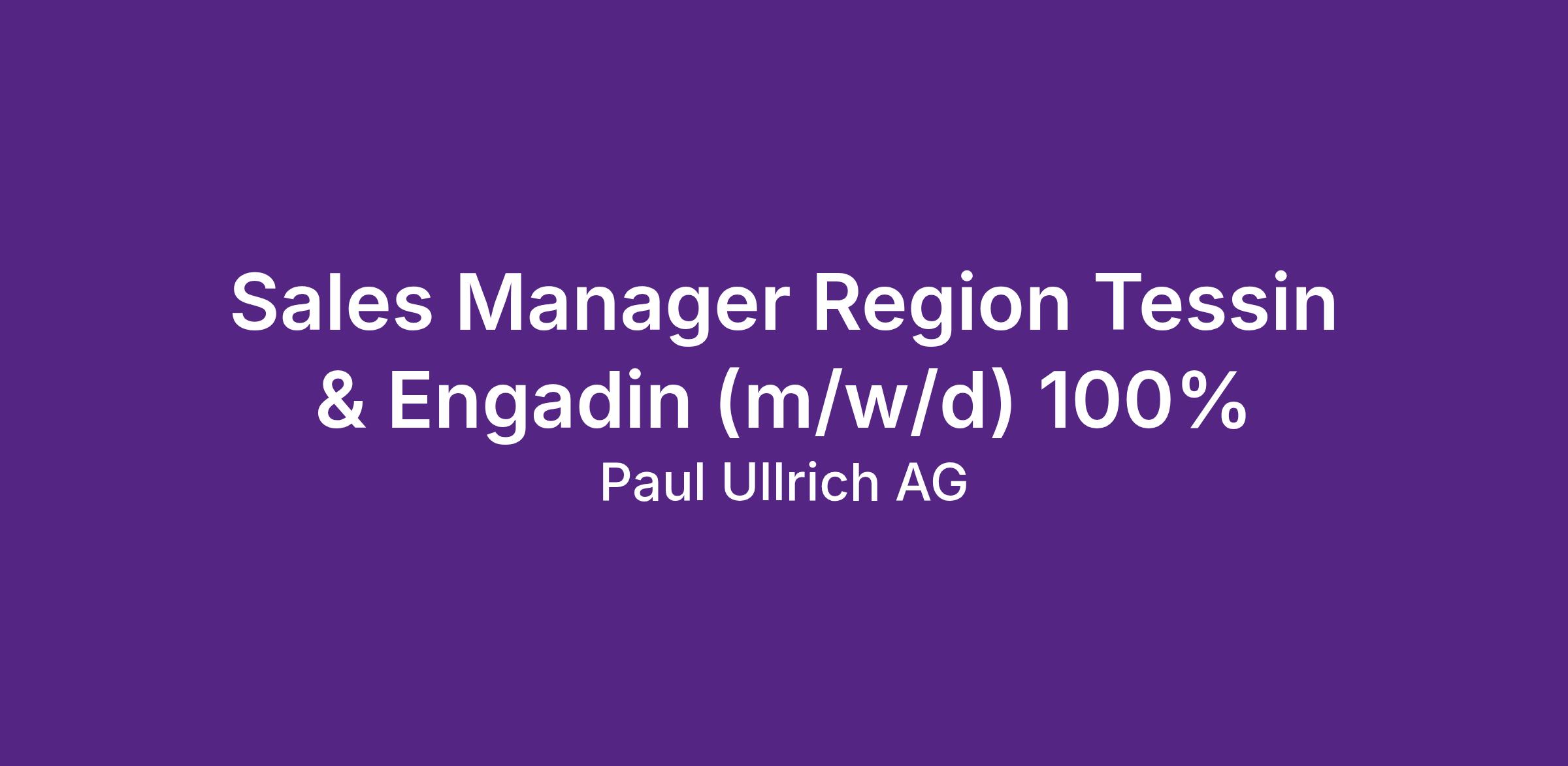 Zur Ergänzung unseres Sales Teams suchen wir per sofort oder nach Vereinbarung eine/n Sales Manager Region Tessin & Engadin (m/w/d) 100%