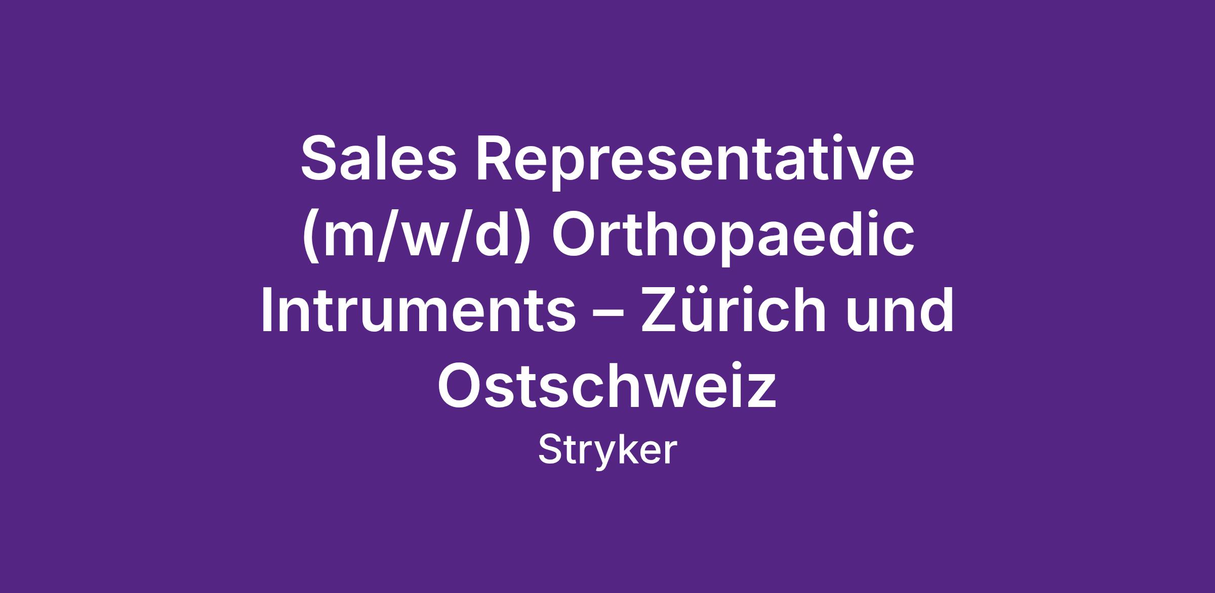 In dieser verantwortungsvollen Position übernehmen Sie den strategischen und operativen Vertrieb unseres hochspezialisierten Produktportfolios Orthopaedic Instruments – Investitionsgüter, die Standards im OP neu definieren.