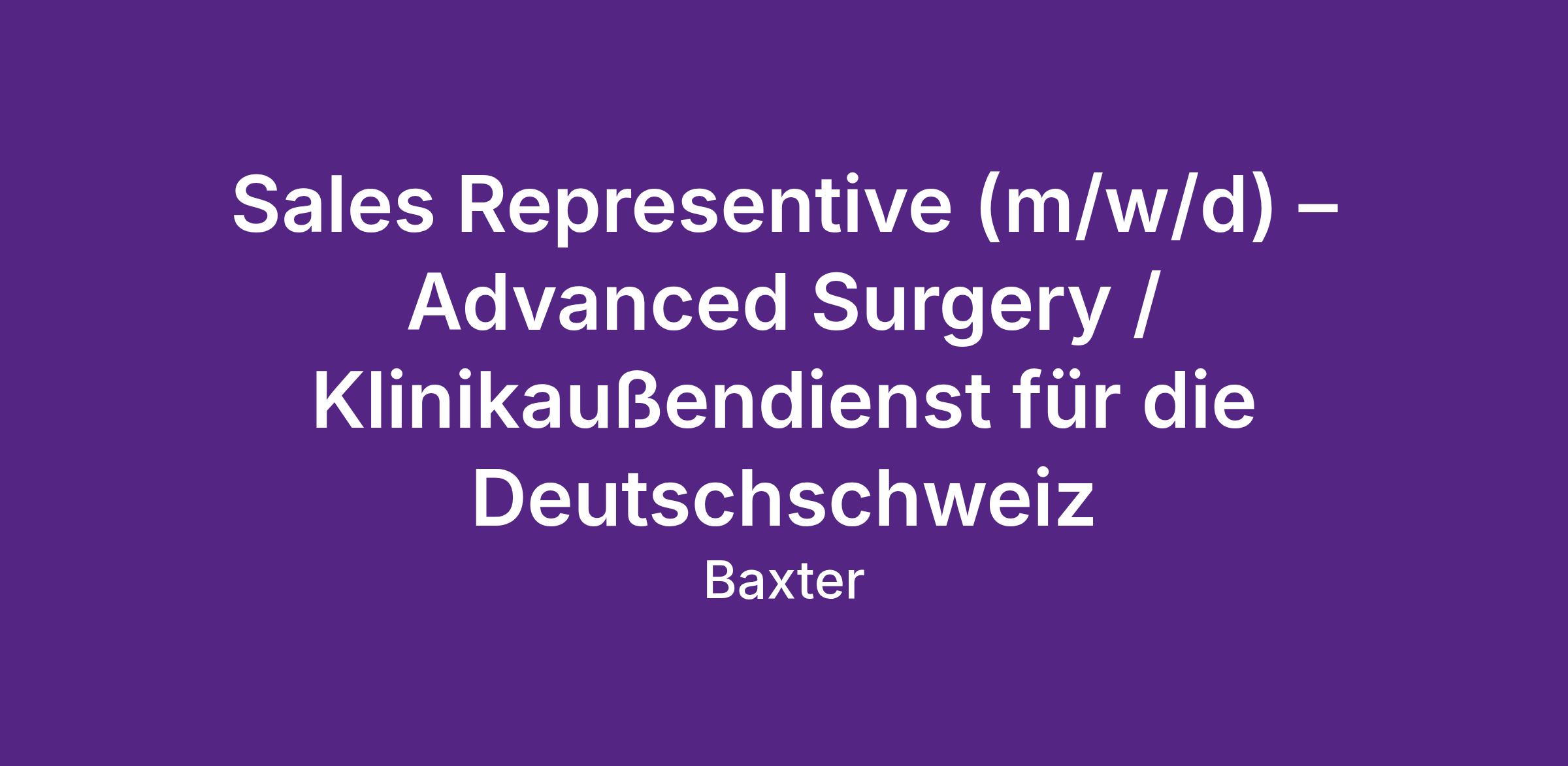 Sales Representive (m/w/d) – Advanced Surgery / Klinikaußendienst