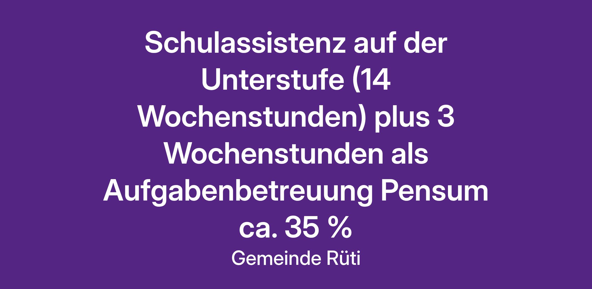 Schulassistenz auf der Unterstufe (14 Wochenstunden) plus 3 Wochenstunden als Aufgabenbetreuung Pensum ca. 35 %