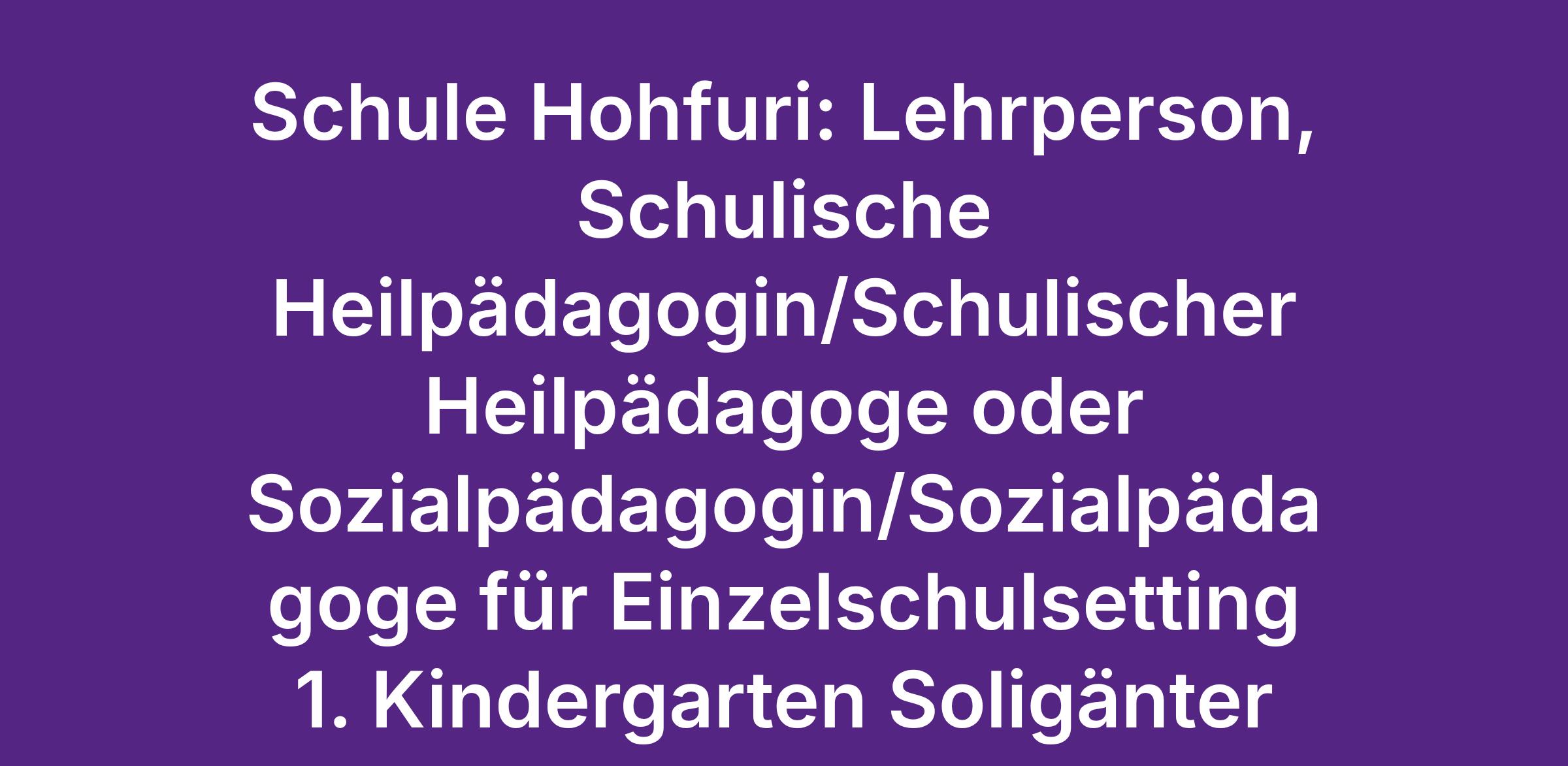 Schule Hohfuri: Lehrperson, Schulische Heilpädagogin/Schulischer Heilpädagoge oder Sozialpädagogin/Sozialpädagoge für Einzelschulsetting 1. Kindergarten Soligänter 14WL Vormittags