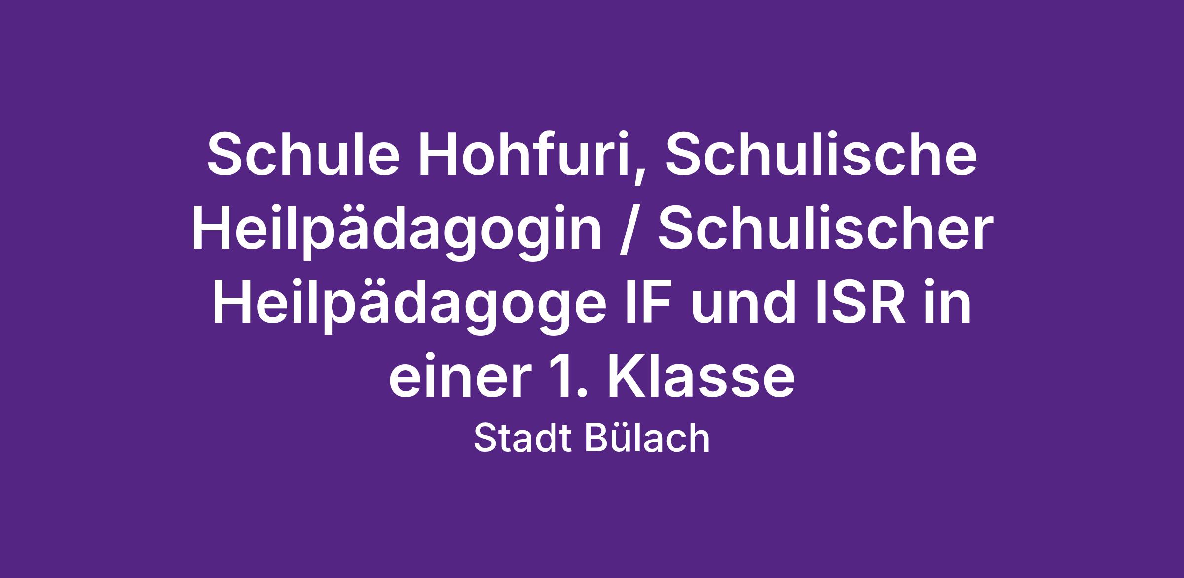 Schule Hohfuri, Schulische Heilpädagogin / Schulischer Heilpädagoge IF und ISR in einer 1. Klasse