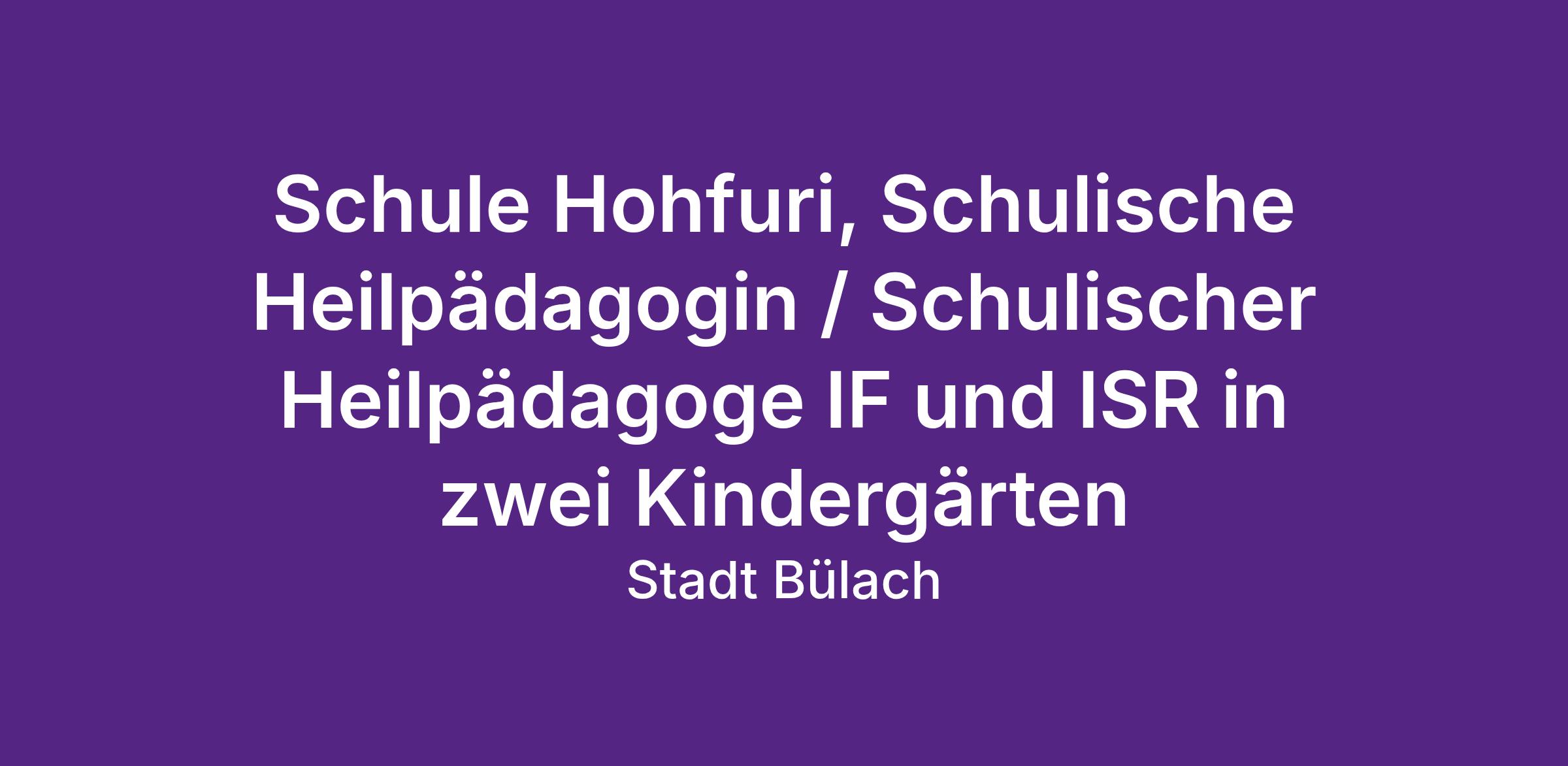Schule Hohfuri, Schulische Heilpädagogin / Schulischer Heilpädagoge IF und ISR in zwei Kindergärten