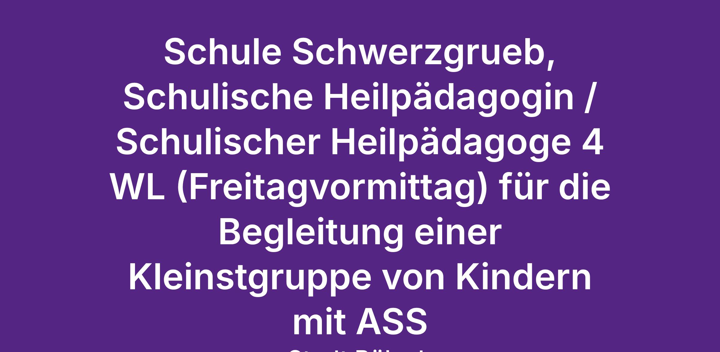 Schule Schwerzgrueb, Schulische Heilpädagogin / Schulischer Heilpädagoge 4 WL (Freitagvormittag) für die Begleitung einer Kleinstgruppe von Kindern mit ASS