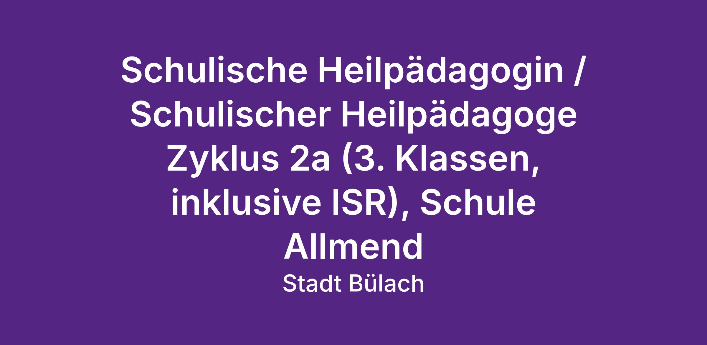 Schulische Heilpädagogin / Schulischer Heilpädagoge Zyklus 2a (3. Klassen, inklusive ISR), Schule Allmend