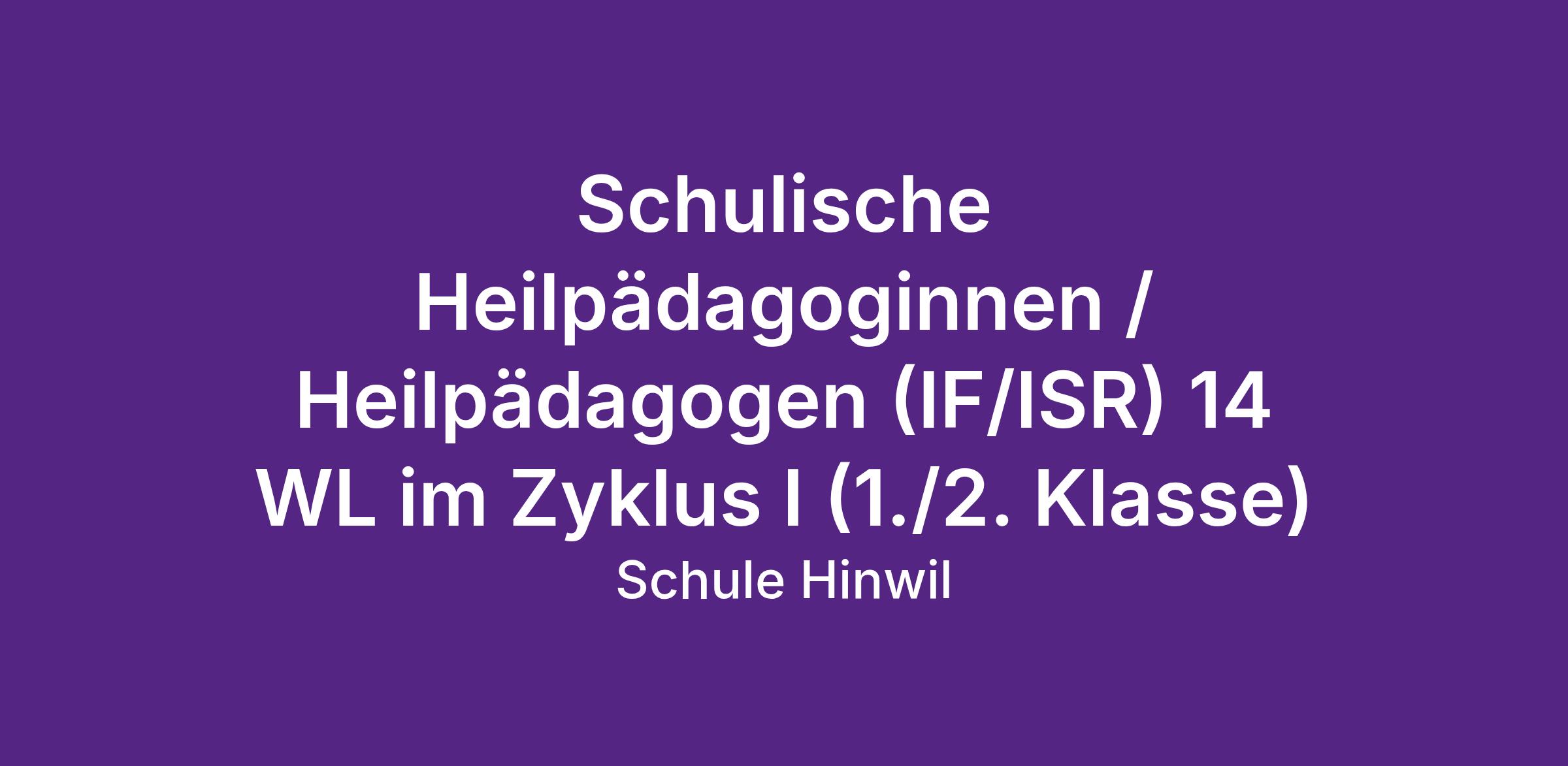 Schulische Heilpädagoginnen / Heilpädagogen (IF/ISR) 14 WL im Zyklus I (1./2. Klasse)