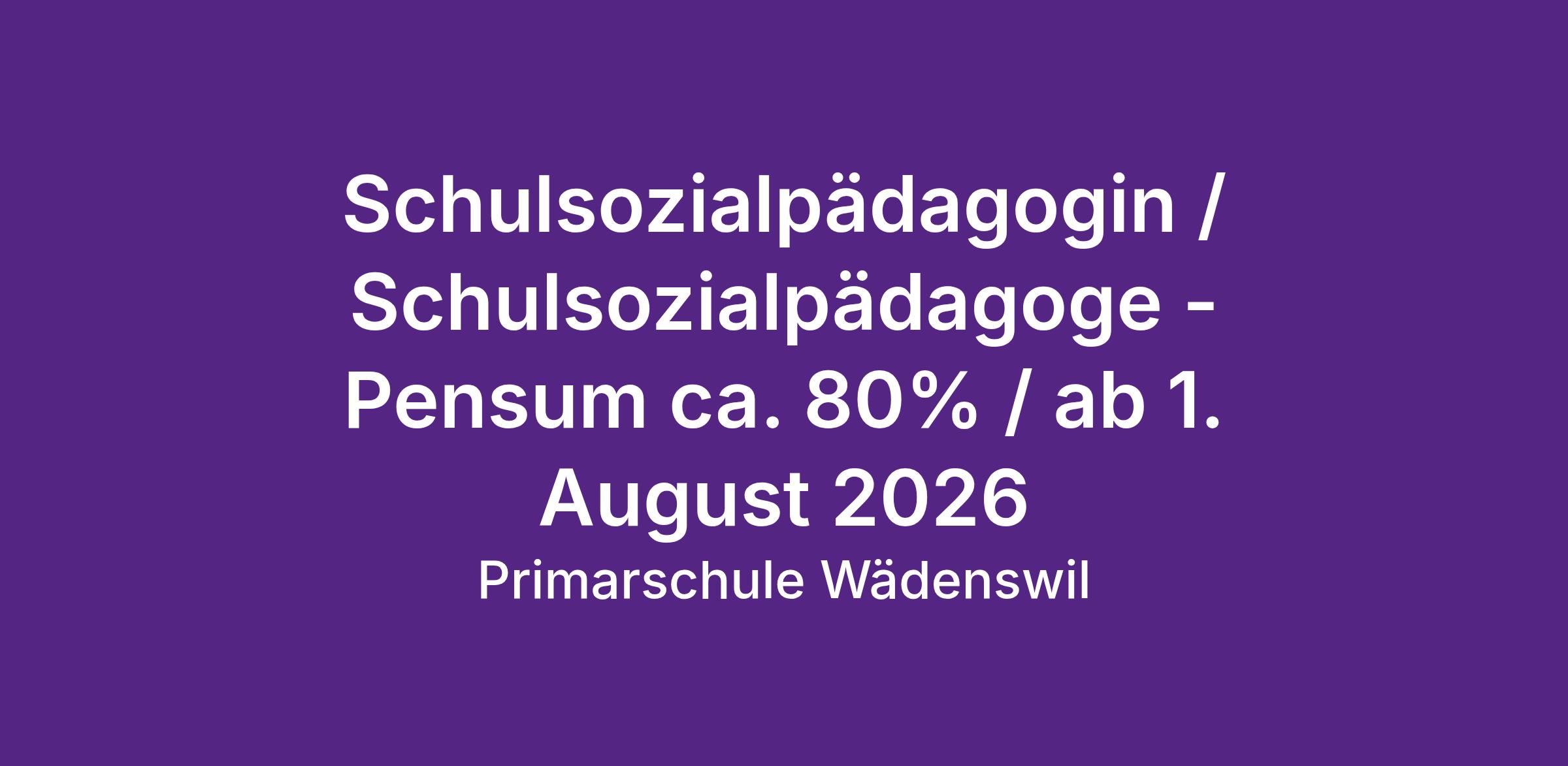 An der Primarschule Wädenswil (PSW) werden rund 2’030 Schülerinnen und Schüler in sechs Schuleinheiten unterrichtet und betreut. Für unsere Schuleinheit Au, Schwerpunkt Schulhaus Ort, suchen wir für das neue Schuljahr 2026/27 mit Start per 1. August 2026 eine engagierte Persönlichkeit als