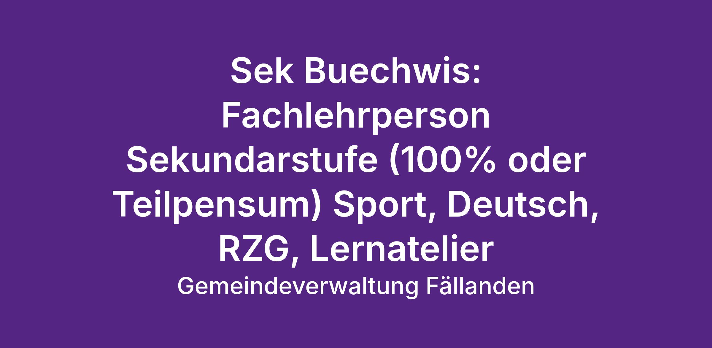 Sek Buechwis: Fachlehrperson Sekundarstufe (100% oder Teilpensum) Sport, Deutsch, RZG, Lernatelier