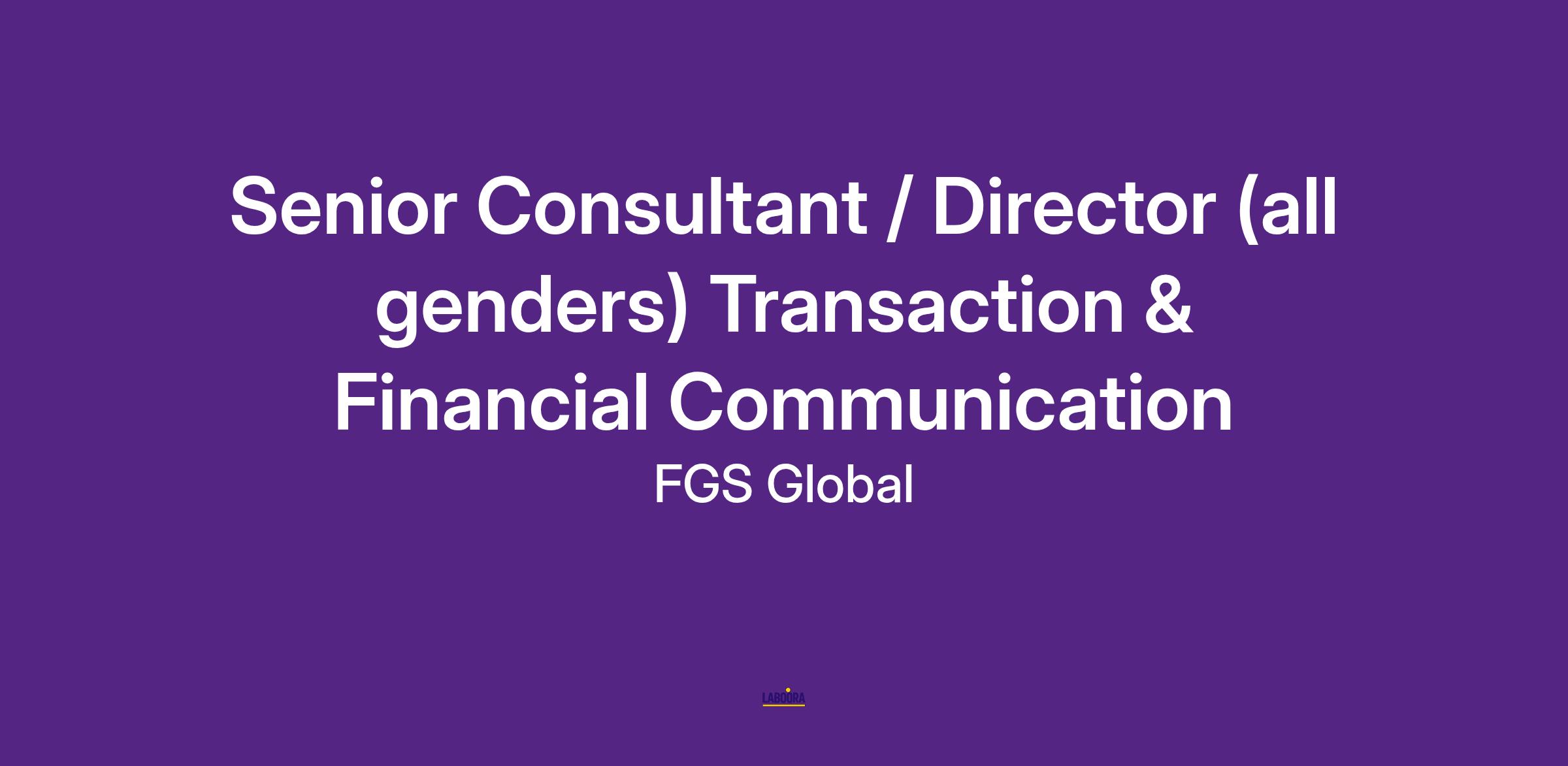 Senior Consultant / Director (all genders) im Bereich Transaction & Financial Communication
