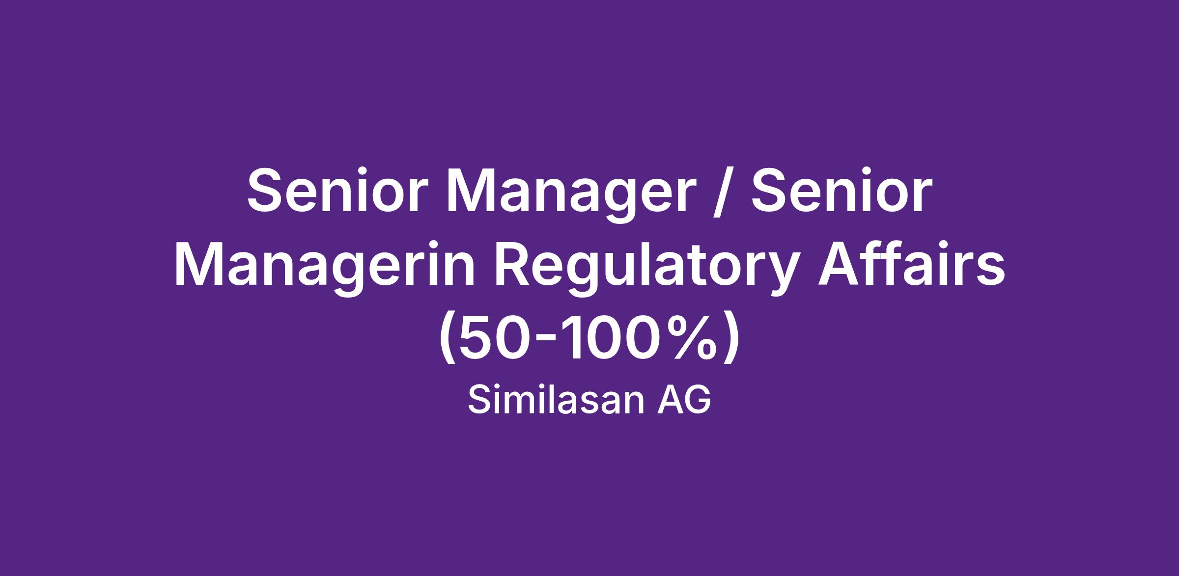SENIOR MANAGER / SENIOR MANAGERIN REGULATORY AFFAIRS (50-100%)