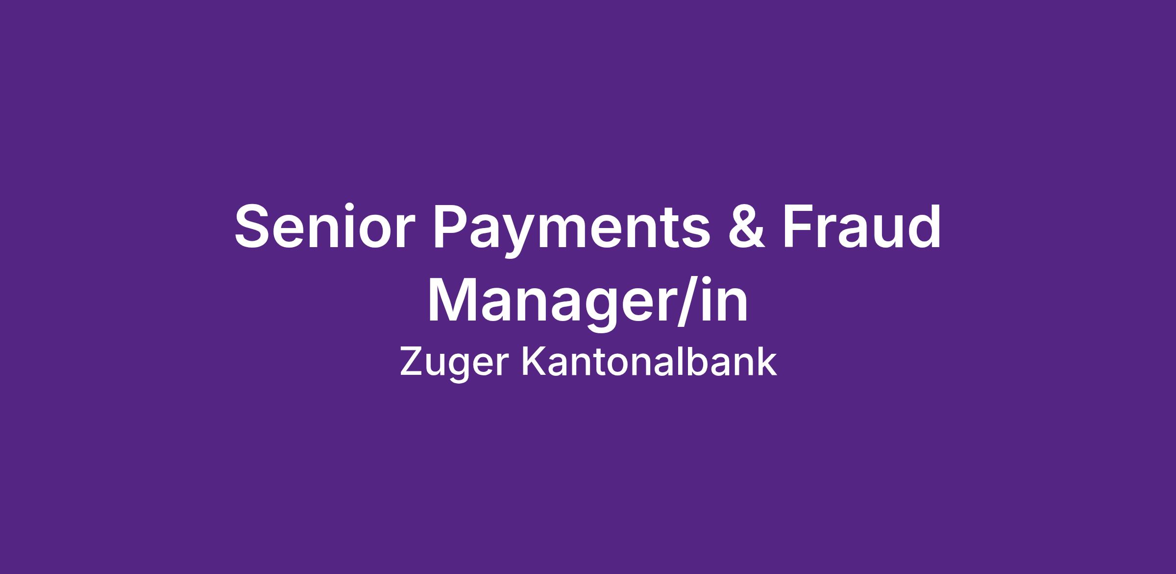 Senior Payments & Fraud Manager/in